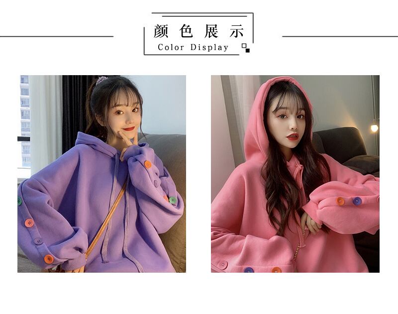 2020年秋冬バージョンの新しいデザインのカラーボタンに加えて、ベルベットの厚いフード付きのルーズな長袖セーターの女性 ロング オータム 秋物 ウィンター 冬物 レディース 韓国ファッション セレクトショップ ヴィンテージ 今日のコーデ 海外輸入 By Constellation mi469271709990