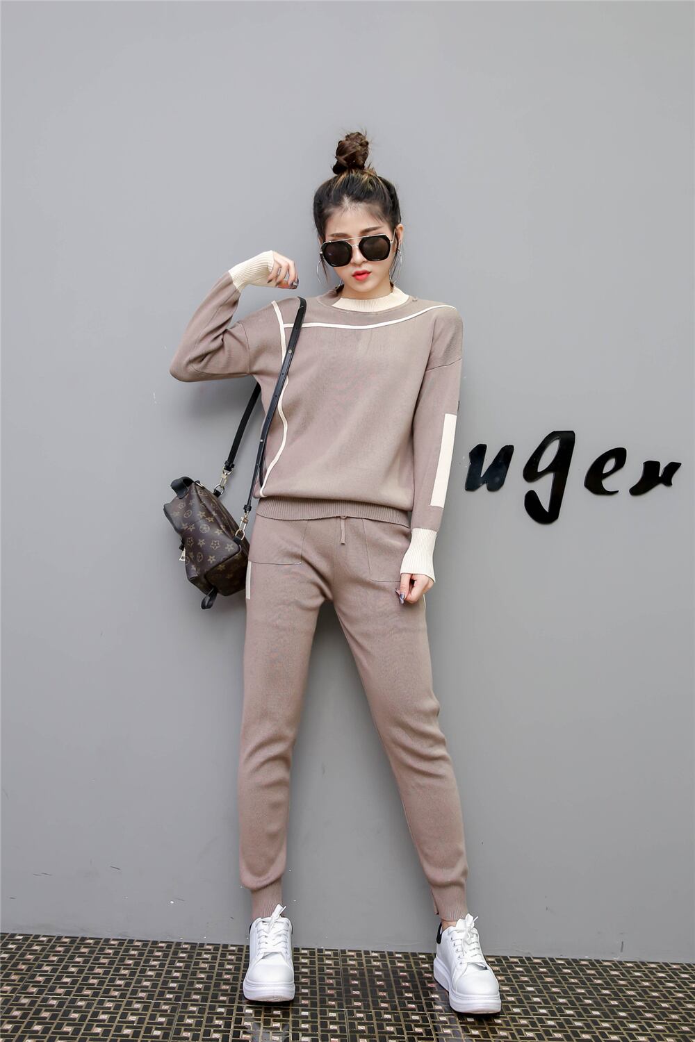 レディースニットセット 長袖スリーブプルオーバー セーター オータムウィンター ロング 秋物 冬物 Oネック mi4656419221562