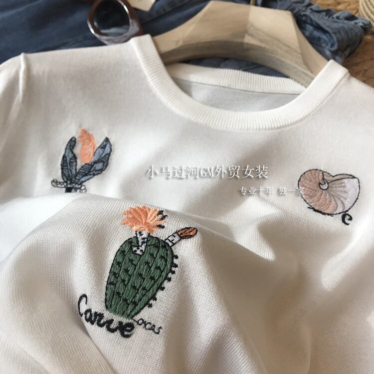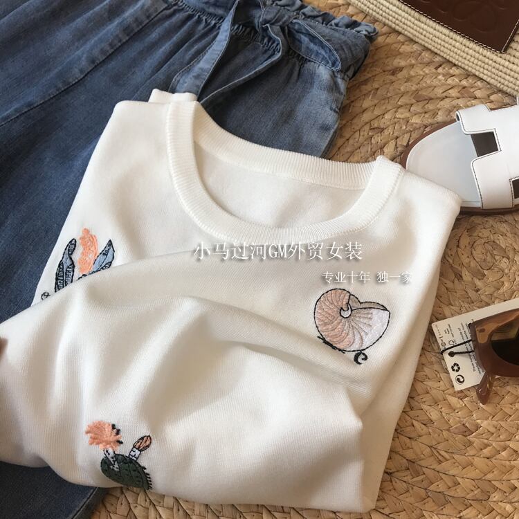 ニットルーズラウンドネックトップス サマー レッド 刺繍 夏物 Oネック 4/22 春夏 SS Neploe mi4661932962123