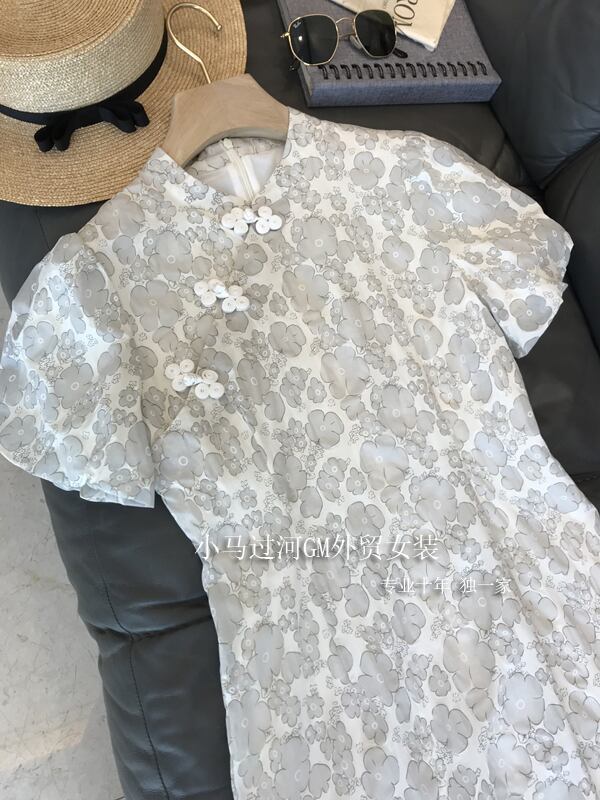スタンダードホワイトFlowerデザイン ボタンスリーブスリムドレス レディース レトロ フラワーデザイン 4/22 春夏 SS Neploe mi4659286049152