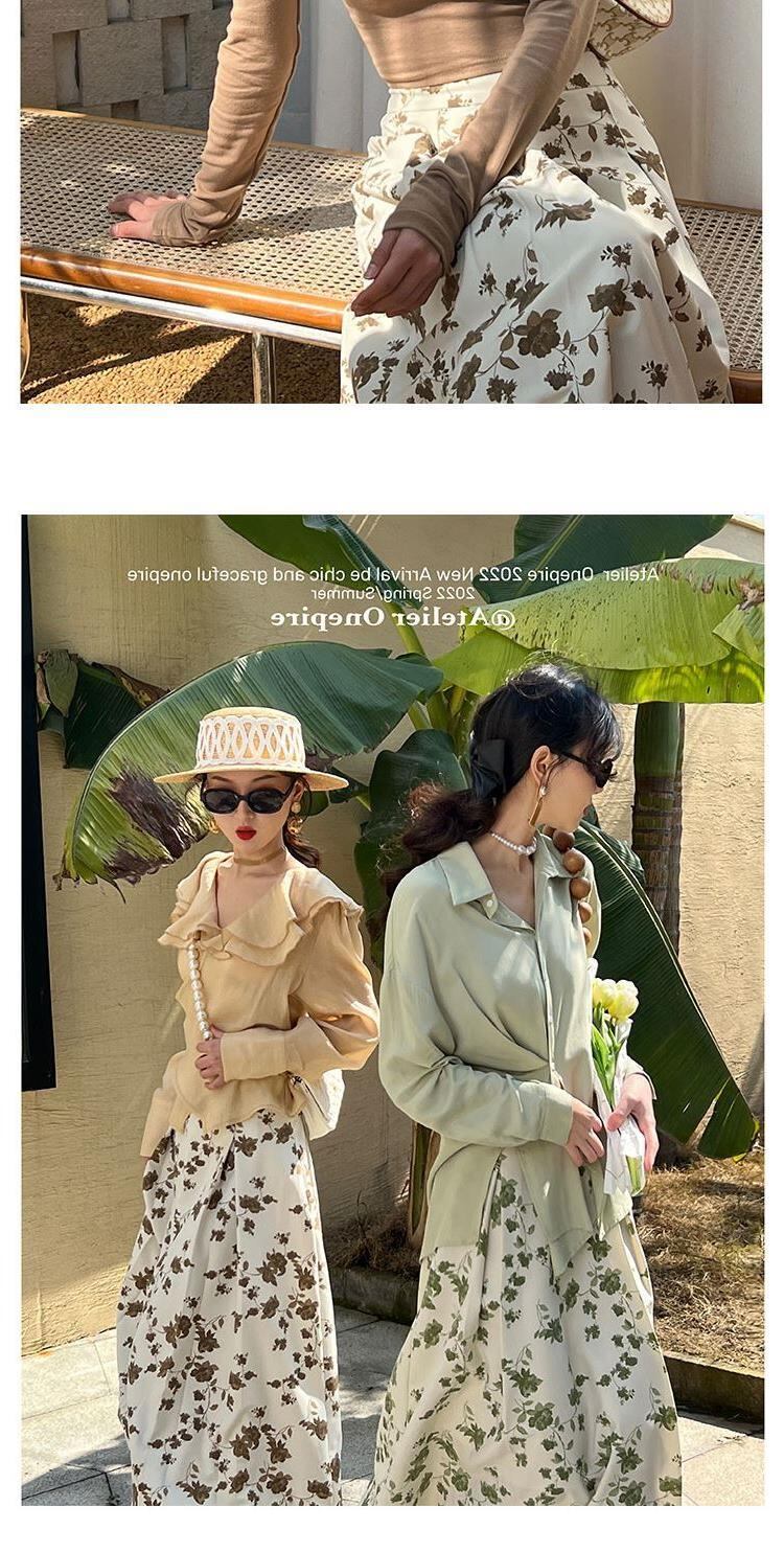 シングルグリーンハイウェストウェストスタンダードプリントスカート レトロ 4/22 春夏 SS Neploe mi4668457201396