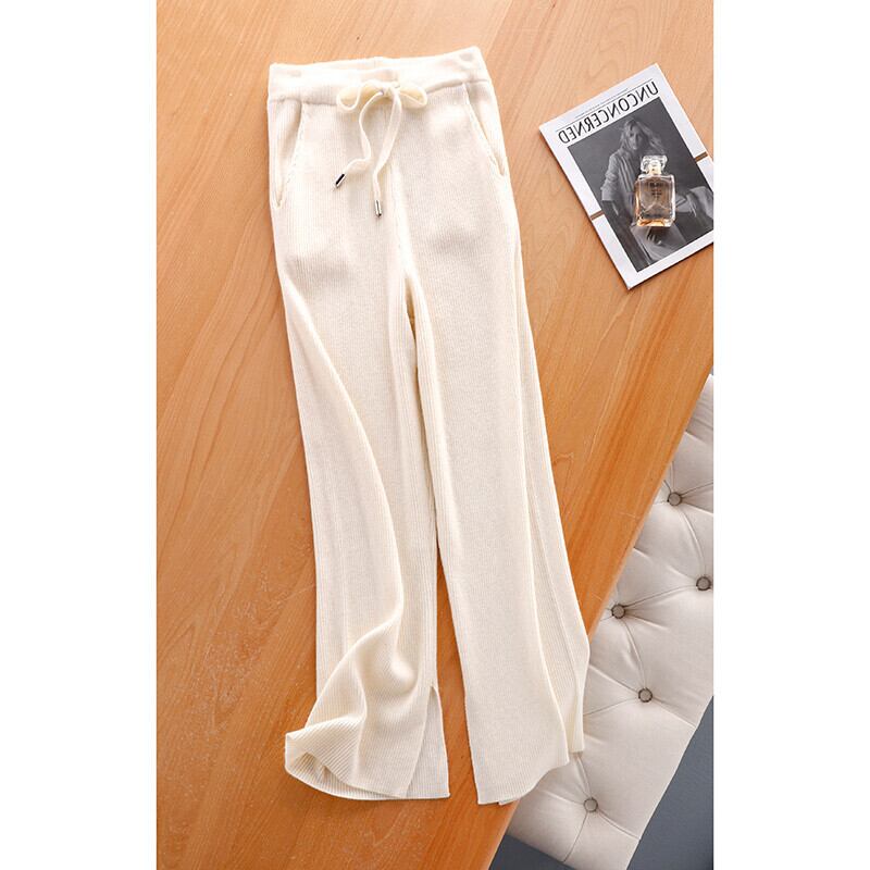 ウールオータムウィンターハイウェストウェストギャザーストレッチスリットニットパンツ エラスティック 伸縮 秋物 冬物 4/22 春夏 SS Neploe mi4629007967684
