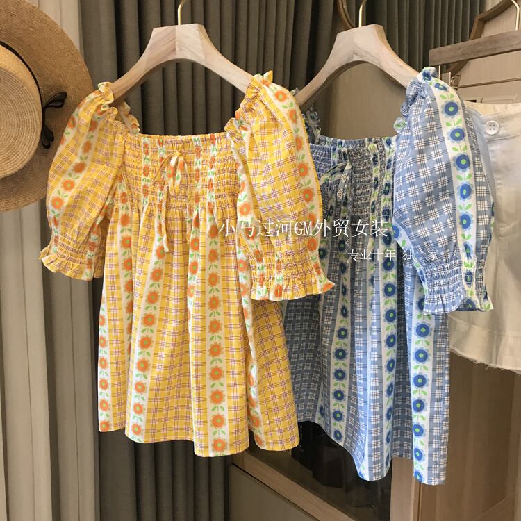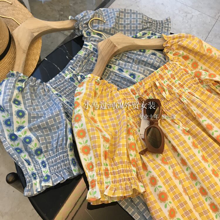 サマーヴィンテージカラー格子柄プリント柄ルーズシャツ 夏物 スクウェア ビンテージ 4/22 春夏 SS Neploe mi4694772040352