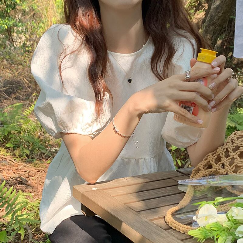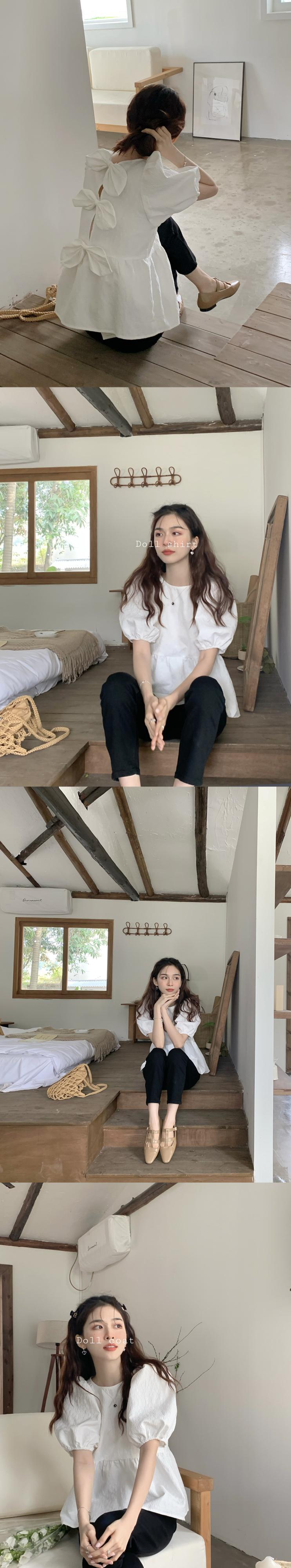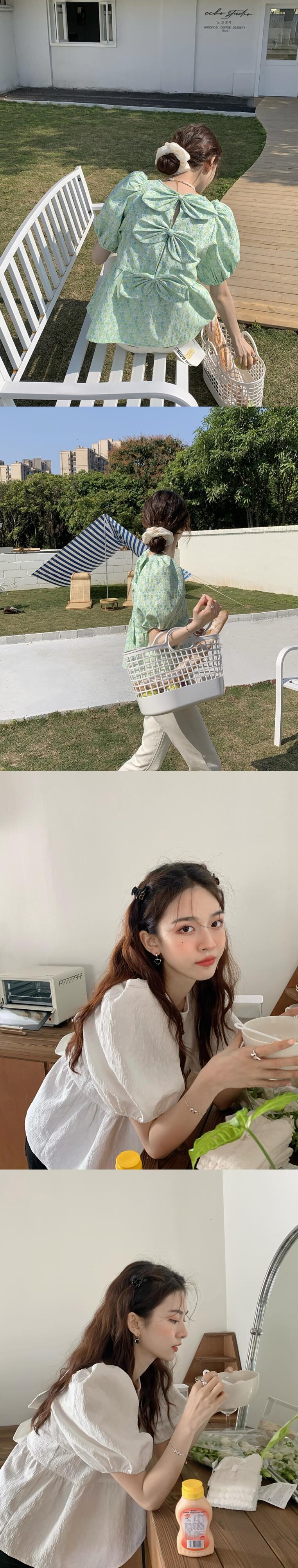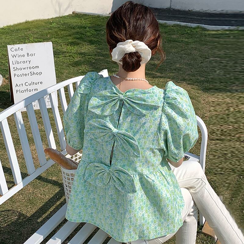 ラウンドネックフローラルバックリボンルーズスリーブシャツ レディース 大人ガーリー スウィート キュート カジュアル 花柄 Oネック 5/3 春夏 SS Neploe mi4651284824323