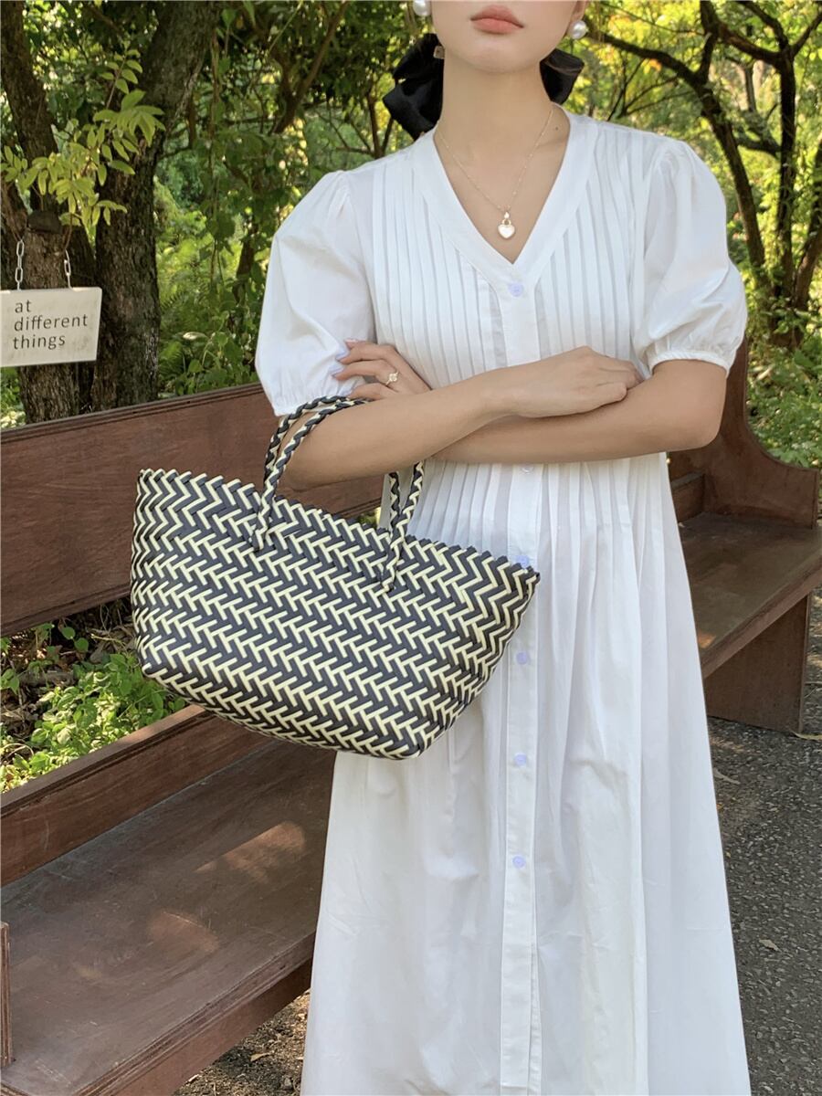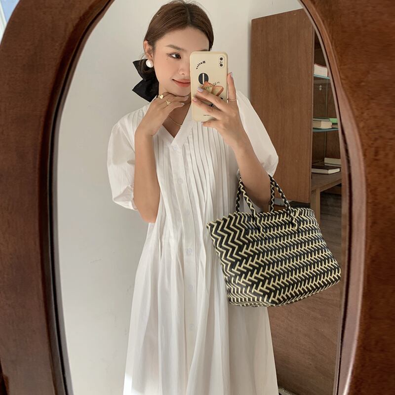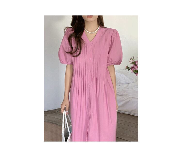 サマーVネックプリーツルーズスリーブシャツ ドレス レディース 大人ガーリー スウィート キュート カジュアル 夏物 5/3 春夏 SS Neploe mi4657553887143