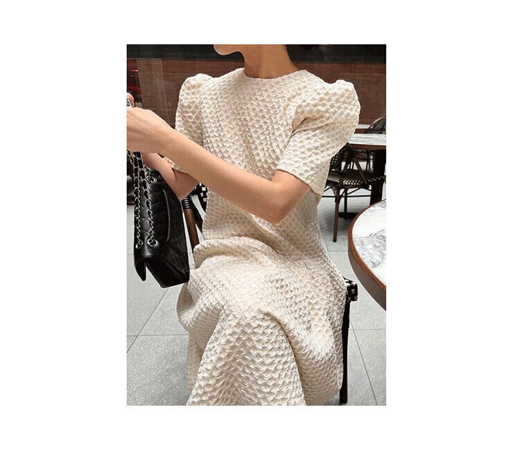 ラウンドネック格子柄ウェストスリムスリーブロングドレス レディース エレガント Oネック 5/3 春夏 SS Neploe mi4623242368126
