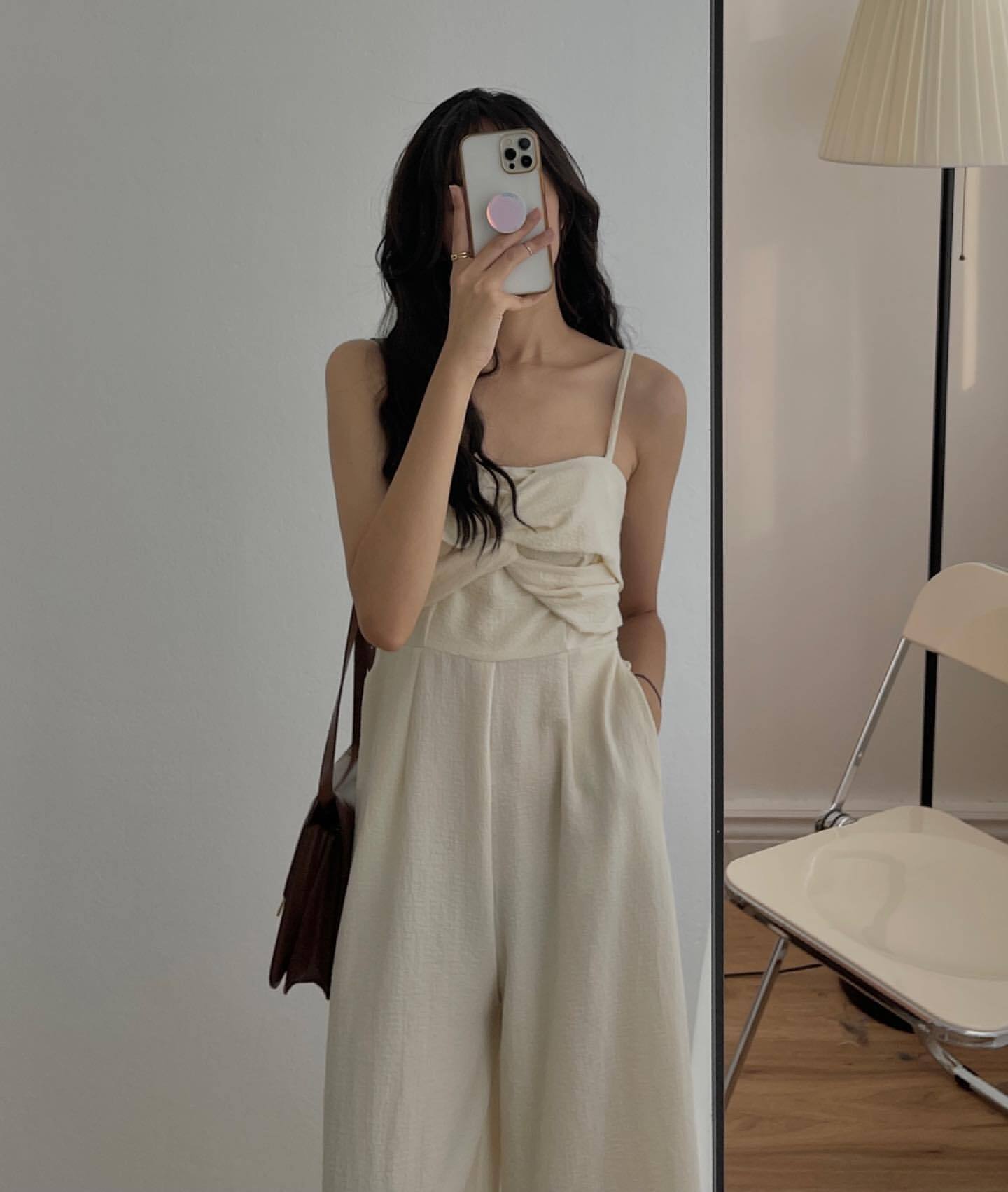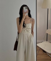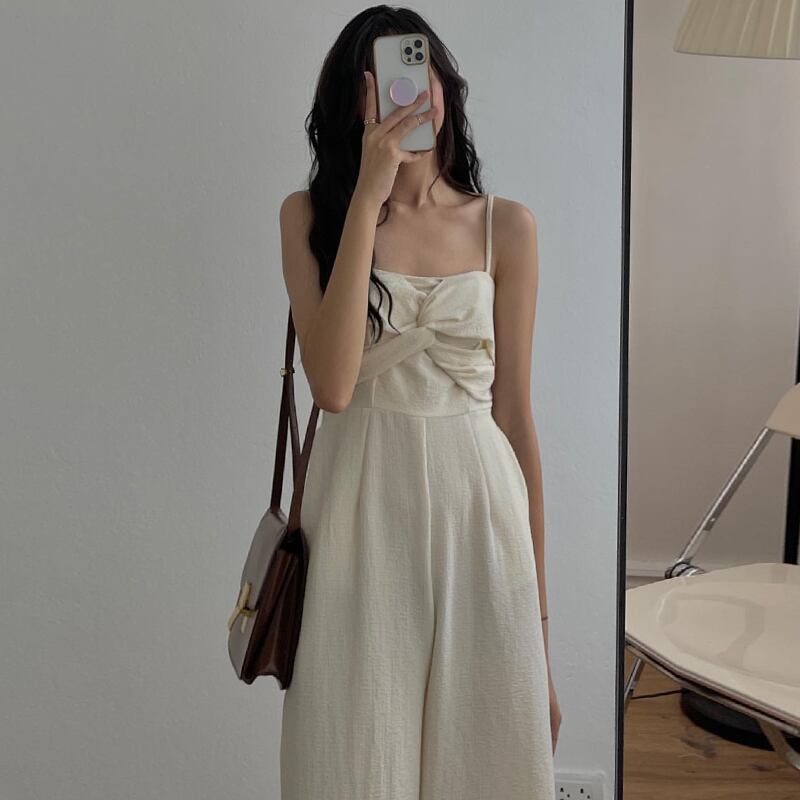 サマーカラーハイウェストウェストスリムノースリーブワイドレッグジャンプスーツ オールインワン レディース 夏物 ワイドパンツ スクウェア 5/3 春夏 SS Neploe mi4651944178035