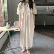 サマーラウンドネックプリーツルーズカジュアルスリーブドレス ロングスカート 夏物 Oネック 5/3 春夏 SS Neploe mi466924592805