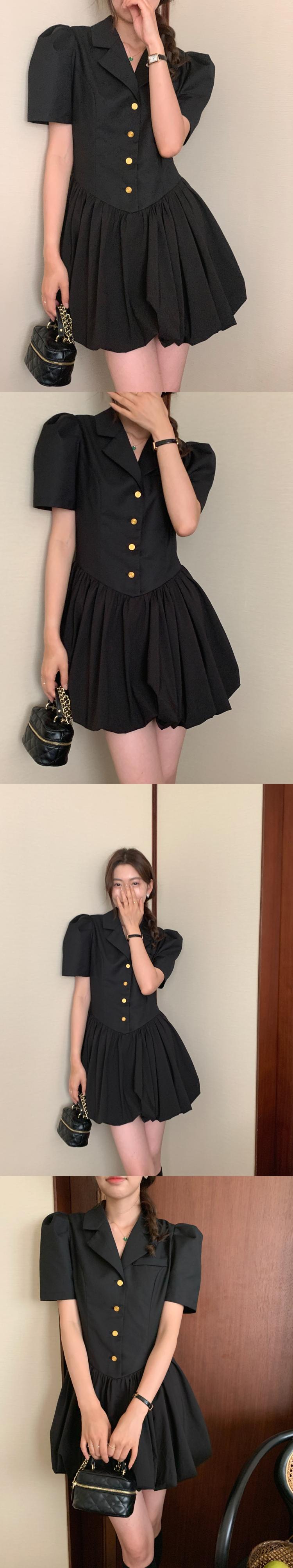 サマースタンダードカラーウェストスリーブプリーツドレス レトロ 夏物 5/3 春夏 SS Neploe mi4645945039415