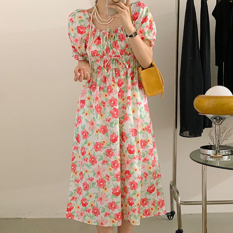 サマーカラーフローラルドレス 大人ガーリー スウィート キュート カジュアル 夏物 花柄 5/3 春夏 SS Neploe mi4653061322545