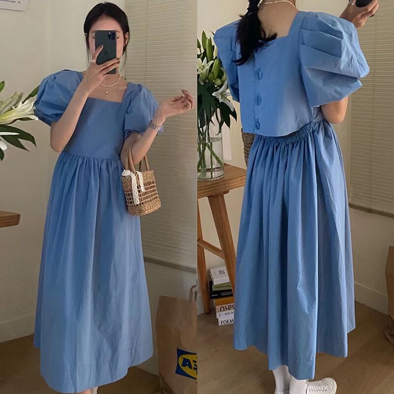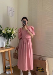 サマーカラーバックウェストルーズスリーブロングドレス レディース エレガント 夏物 スクウェア 5/3 春夏 SS Neploe mi4652237572677