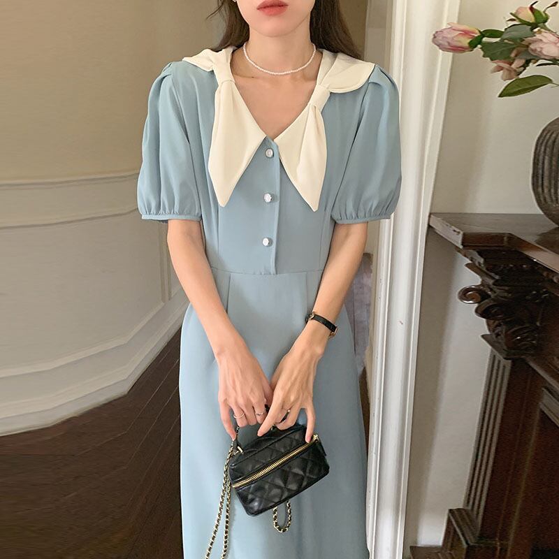 サマーVネックリボンウェストスリムスリーブドレス ロングスカート レディース 夏物 ステッチ 5/3 春夏 SS Neploe mi4628158353071