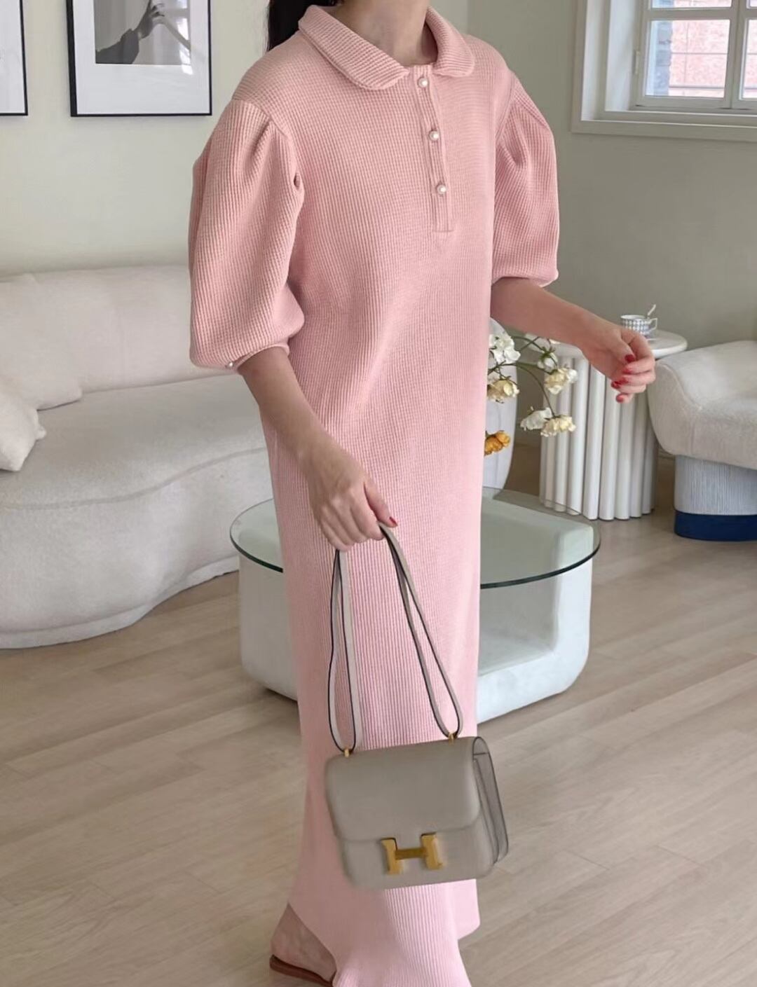 サマーカラールーズストライプニットドレス レディース ピンク 夏物 5/3 春夏 SS Neploe mi4668299476659