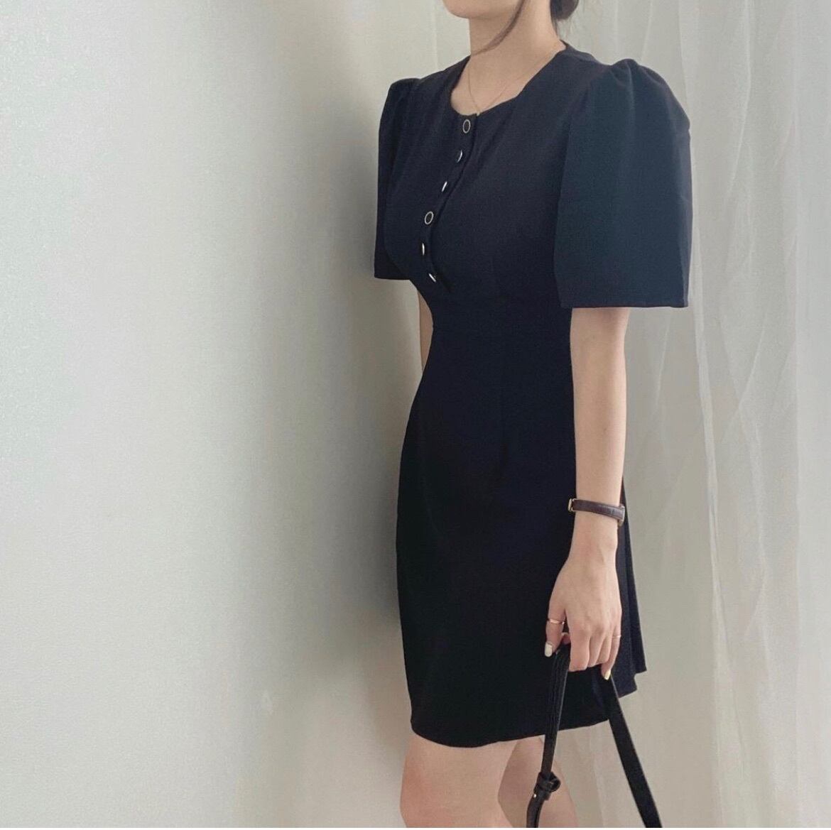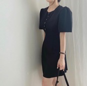 ラウンドネックウェストスリムスリーブドレス Oネック 5/3 春夏 SS Neploe mi4667967952715