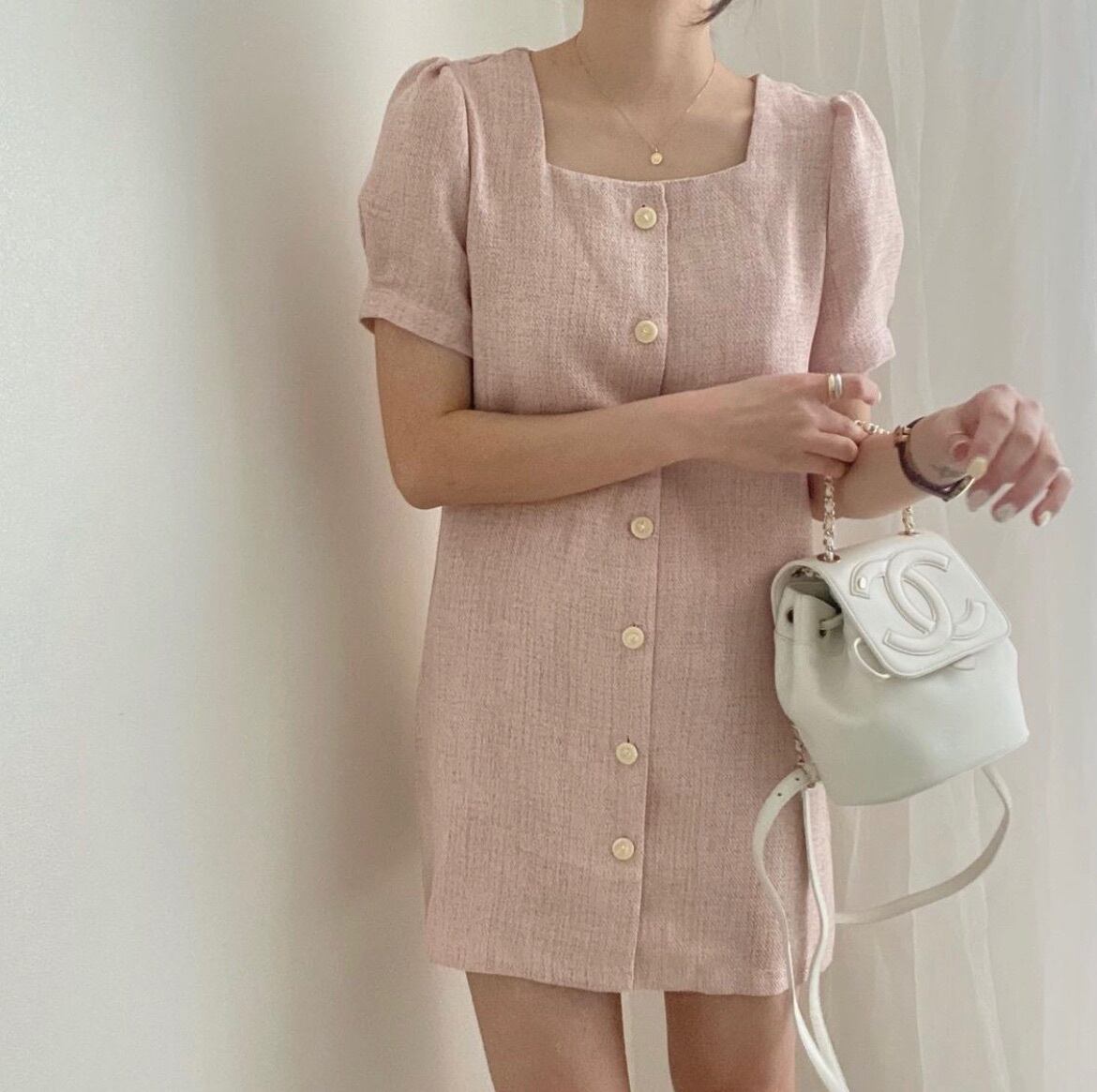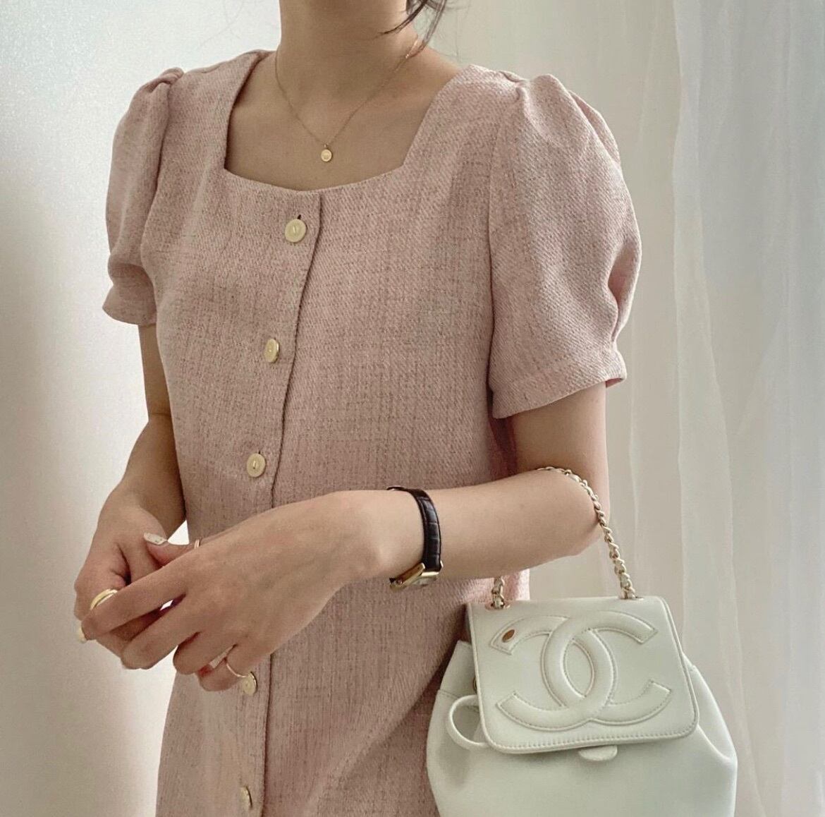 サマーカラーツィードスリーブドレス ショートスカート レディース 夏物 スクウェア 5/3 春夏 SS Neploe mi4664639987617