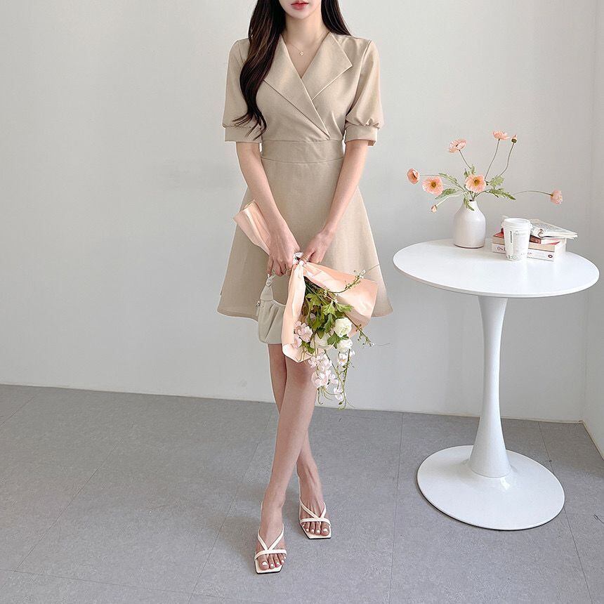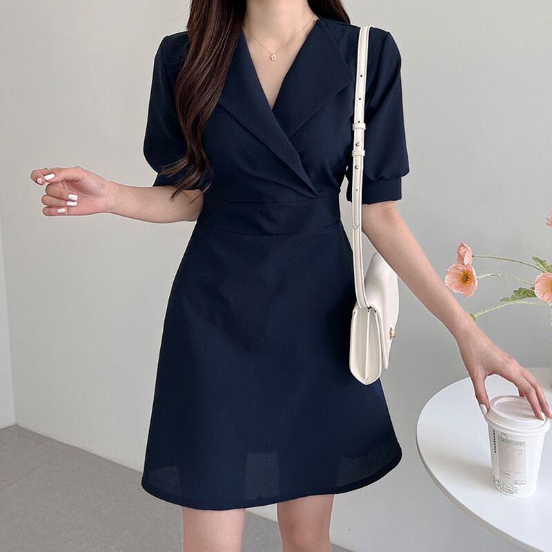サマーカラーソリッド ウェストスリムスリーブAラインドレス ショートスカート レディース 夏物 ソリッドカラー 5/3 春夏 SS Neploe mi4654522482839