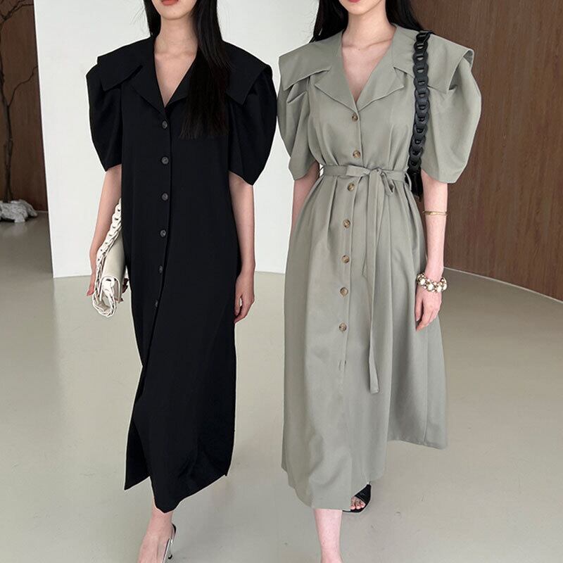 サマースタンダードストラップ ウェストスリムスリーブドレス レトロ 夏物 5/3 春夏 SS Neploe mi4668437766483