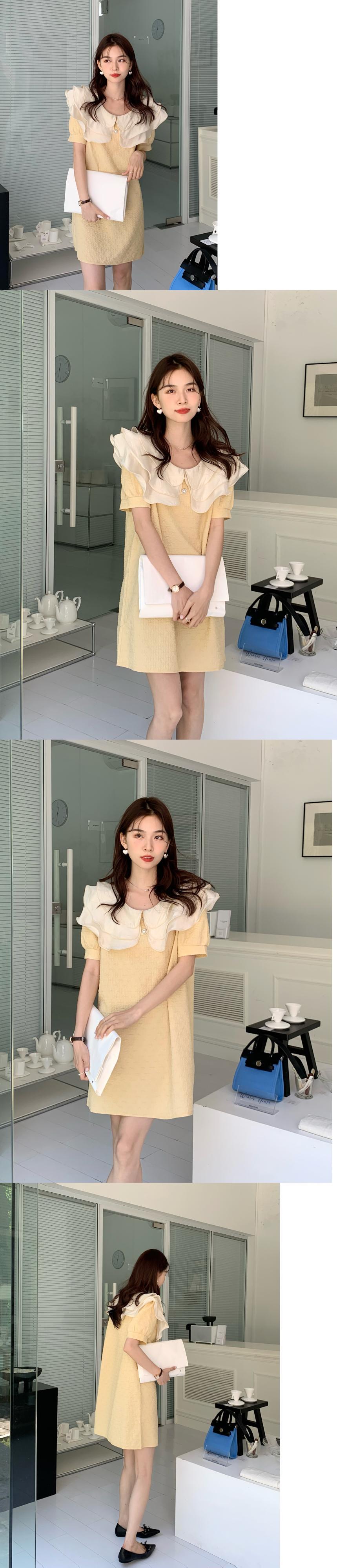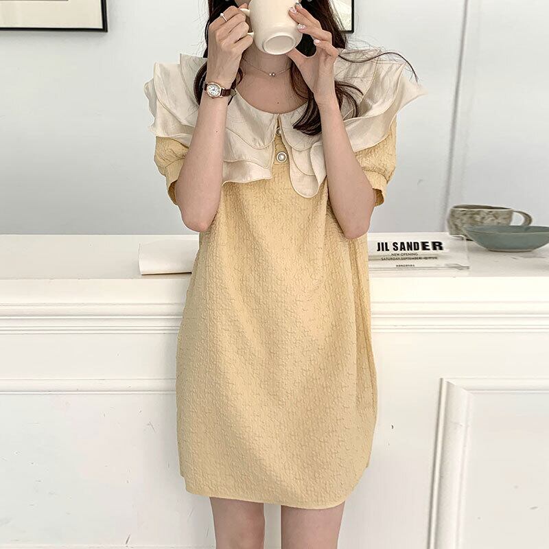 サマーイエローカラースリーブドレス ショートスカート 夏物 5/3 春夏 SS Neploe mi4666923485928