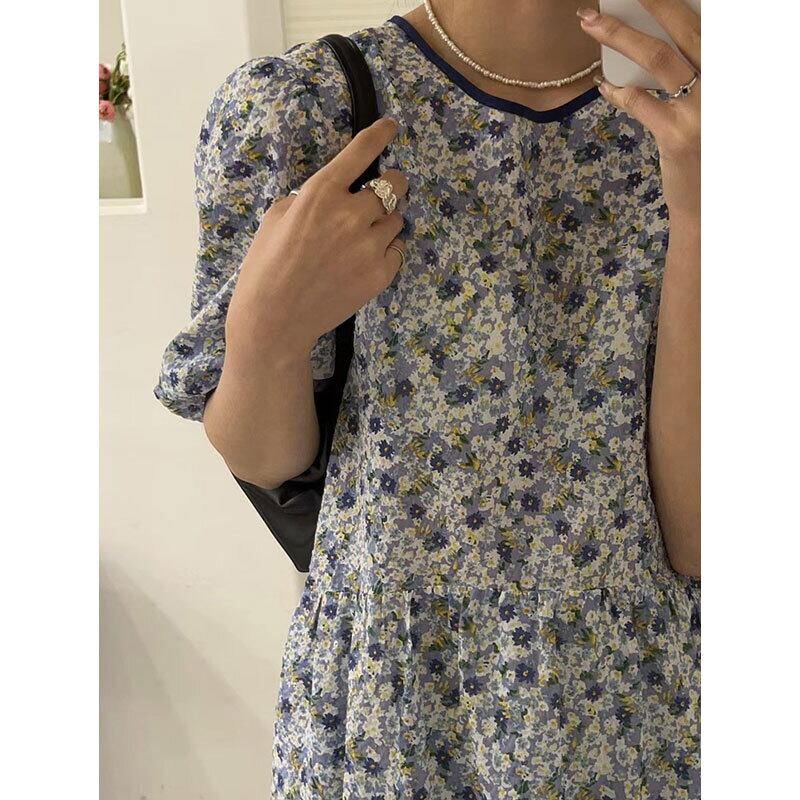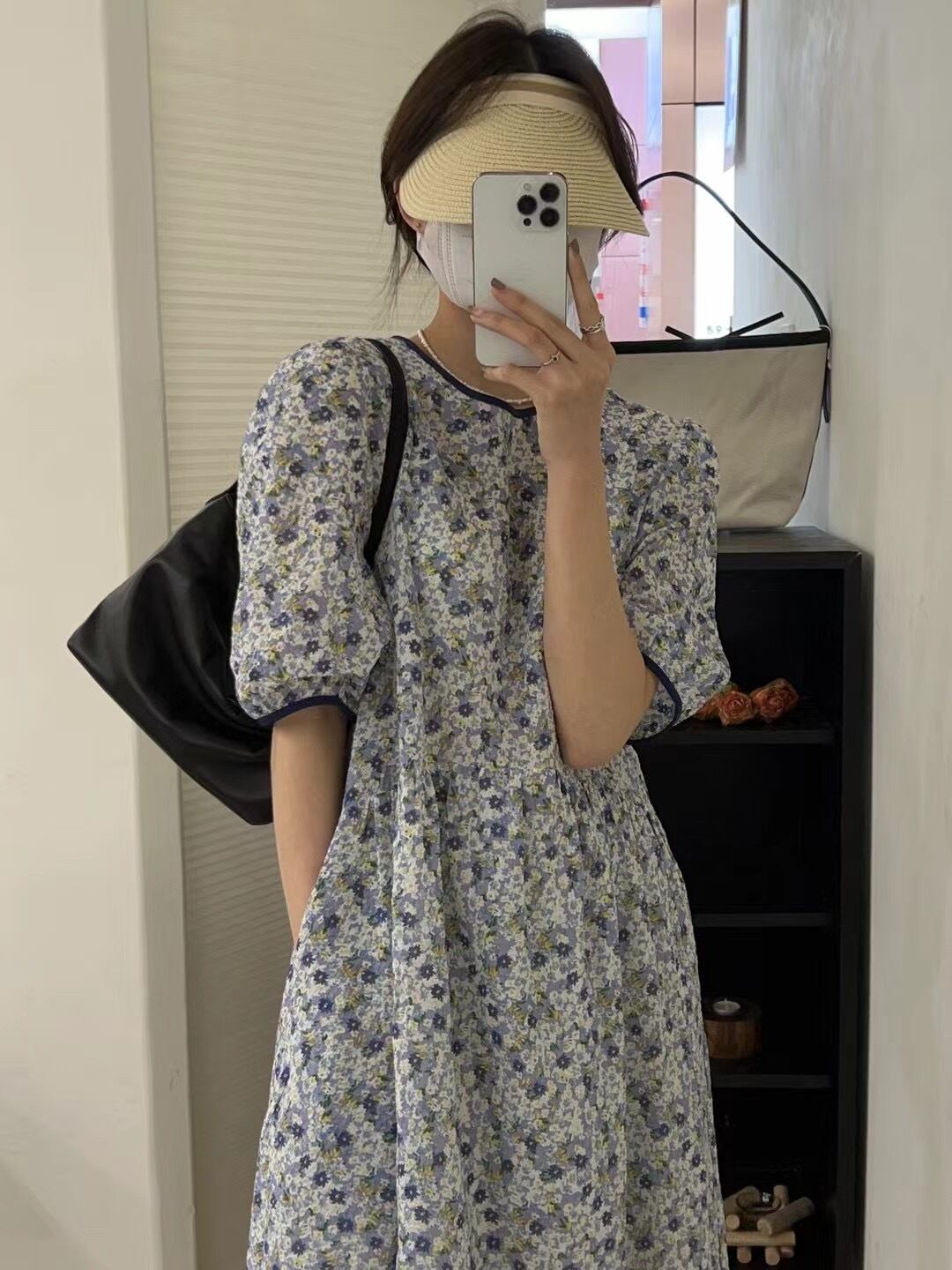 サマースタンダードスタイルラウンドネックルーズカジュアルFlowerデザイン スリーブドレス レトロ 夏物 Oネック フラワーデザイン 5/3 春夏 SS Neploe mi4652709970188