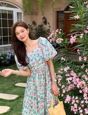 カラーウェストスリムフローラルドレス エレガント 花柄 スクウェア 5/3 春夏 SS Neploe mi466075302161