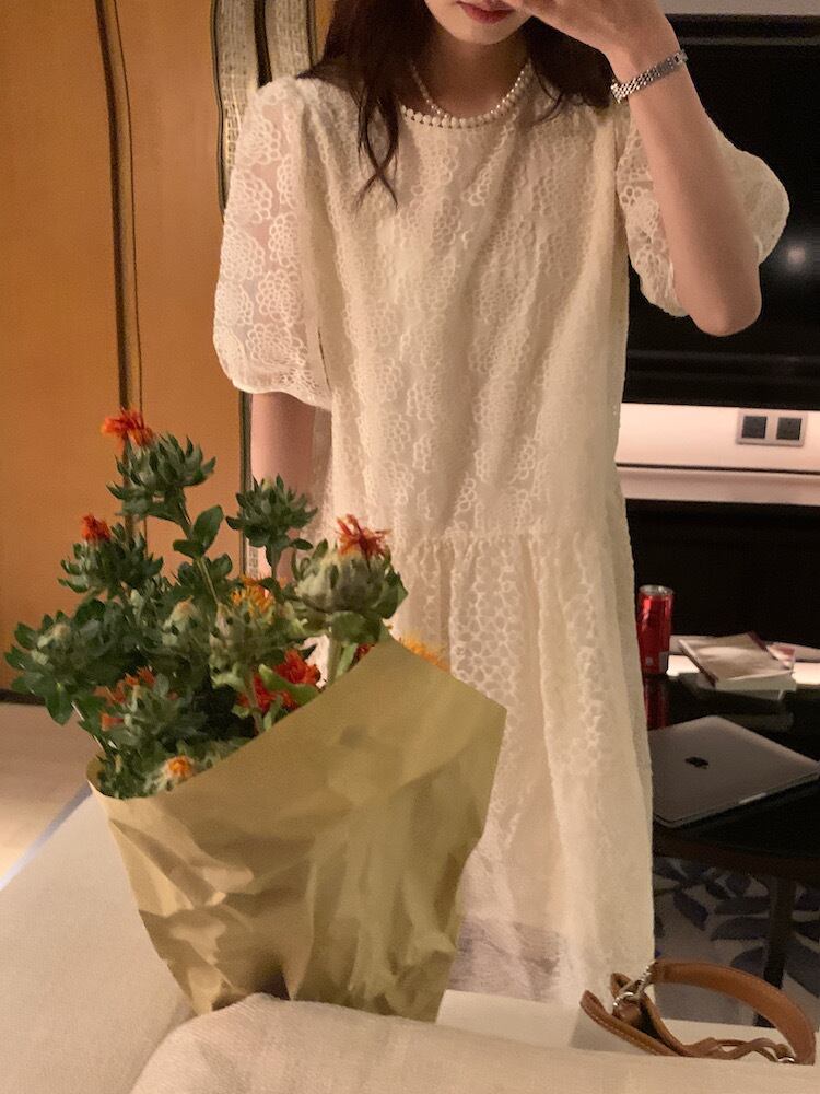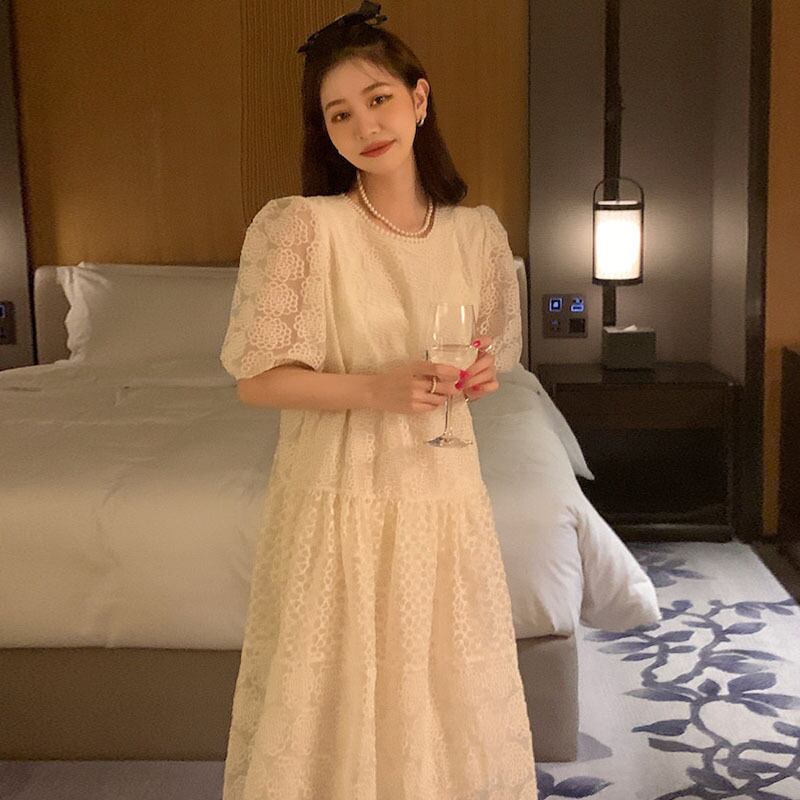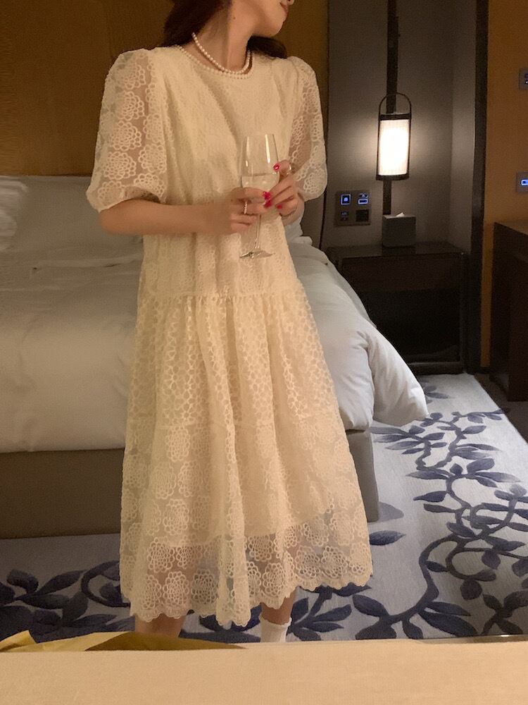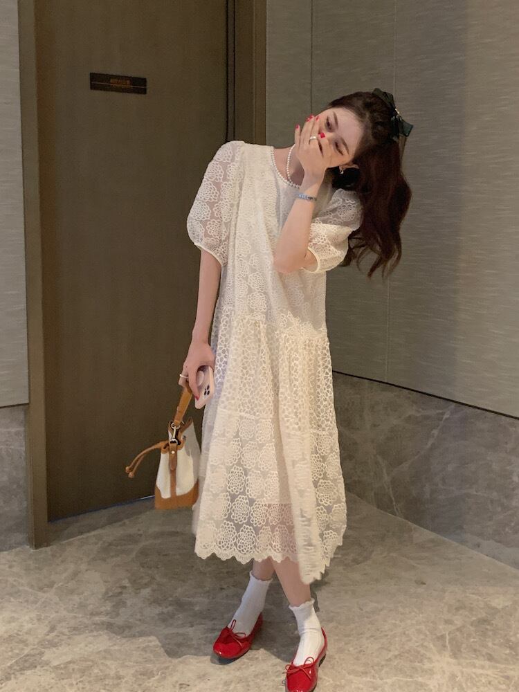 サマーラウンドネックレースジャカードルーズスリーブドレス 夏物 Oネック 5/3 春夏 SS Neploe mi4630109087492