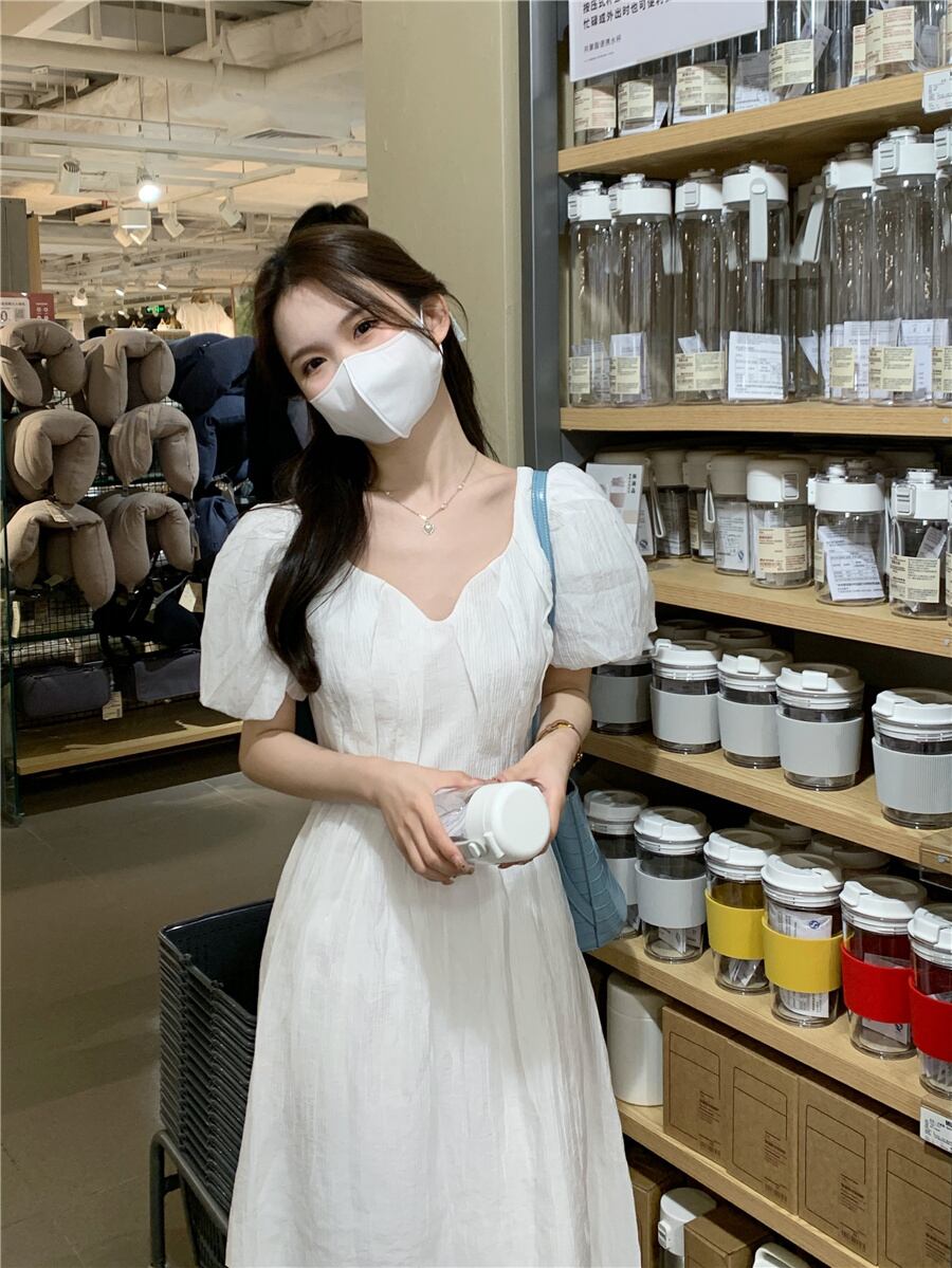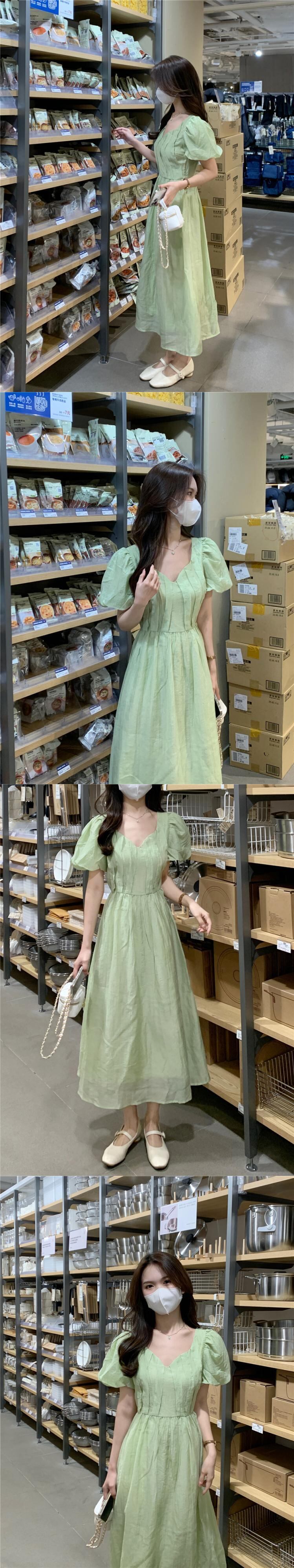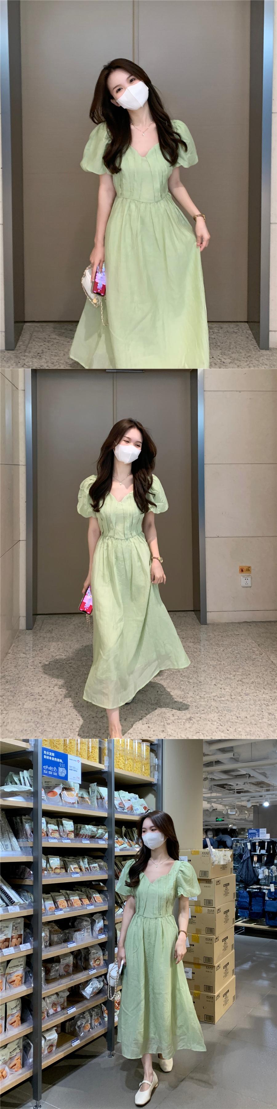 サマーカラープリーツハイウェストウェストスリムスリーブドレス ロングスカート レディース 大人ガーリー スウィート キュート カジュアル エレガント 夏物 スクウェア 5/3 春夏 SS Neploe mi4643448019152