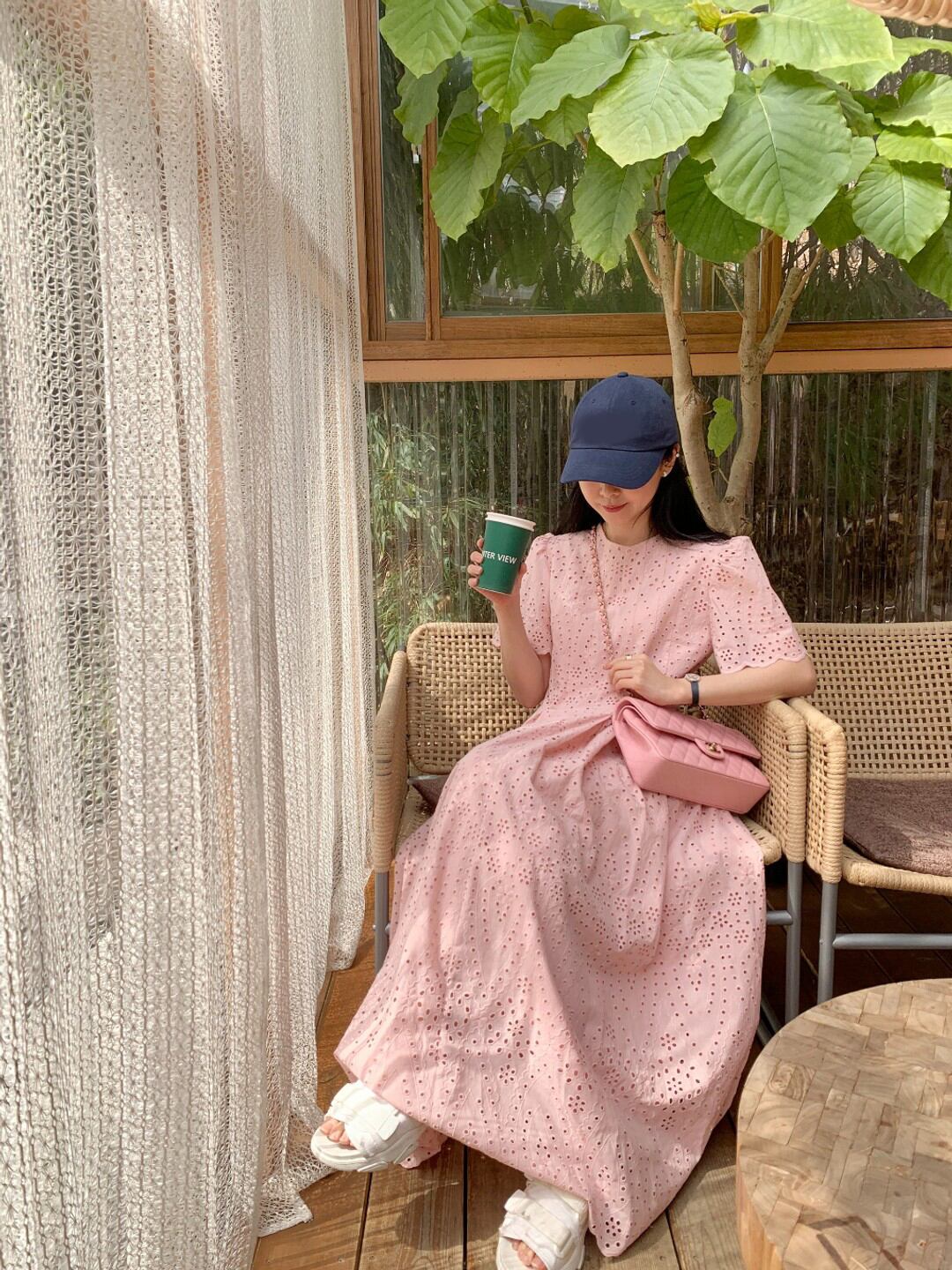 サマーラウンドネックレーススリーブドレス レディース 大人ガーリー スウィート キュート カジュアル エレガント 夏物 Oネック 5/3 春夏 SS Neploe mi4652065288276