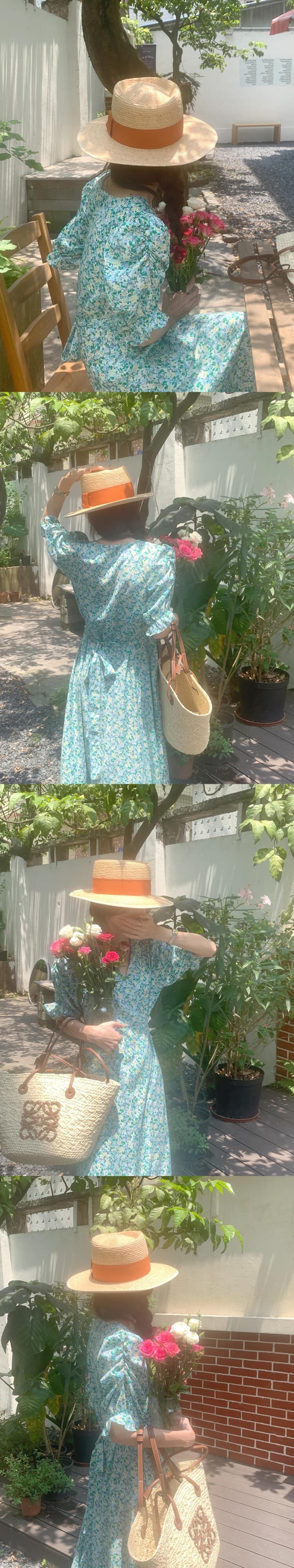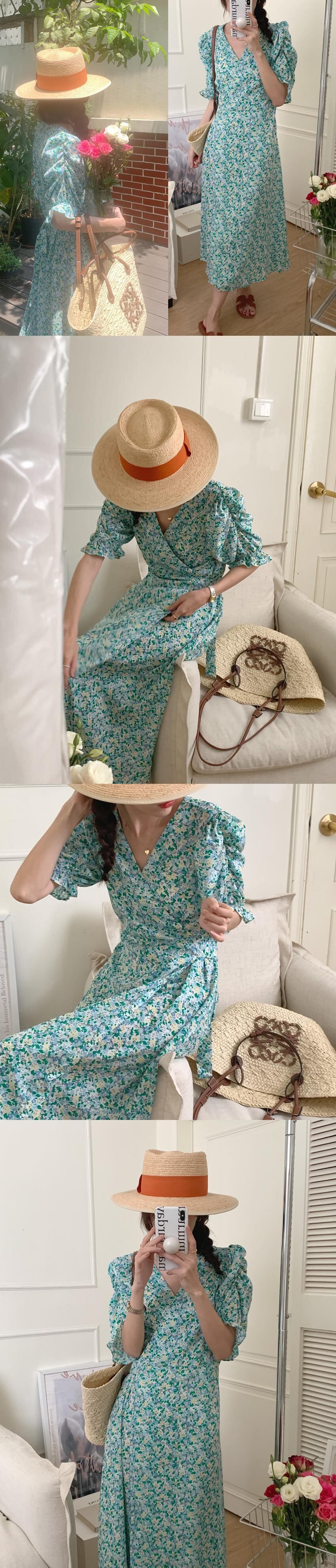 サマーVネックワンピースバンドウェストフローラルスリーブロングドレス レディース エレガント 夏物 花柄 5/3 春夏 SS Neploe mi46576968168