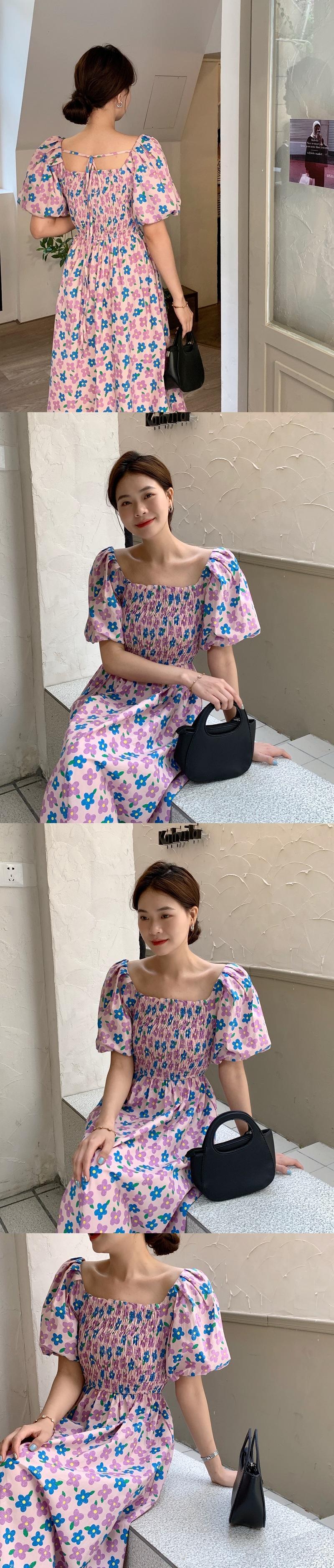 カラーウェストフローラルドレス ロングスカート レディース 大人ガーリー スウィート キュート カジュアル 花柄 スクウェア 5/3 春夏 SS Neploe mi4675677694922