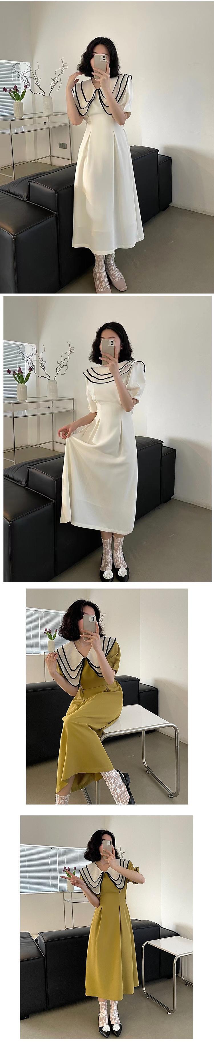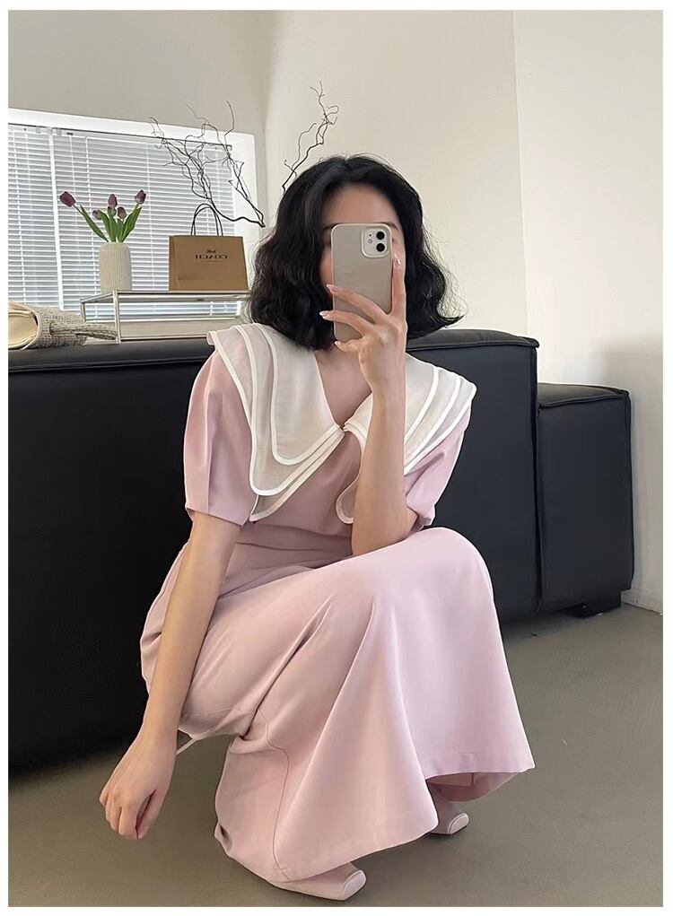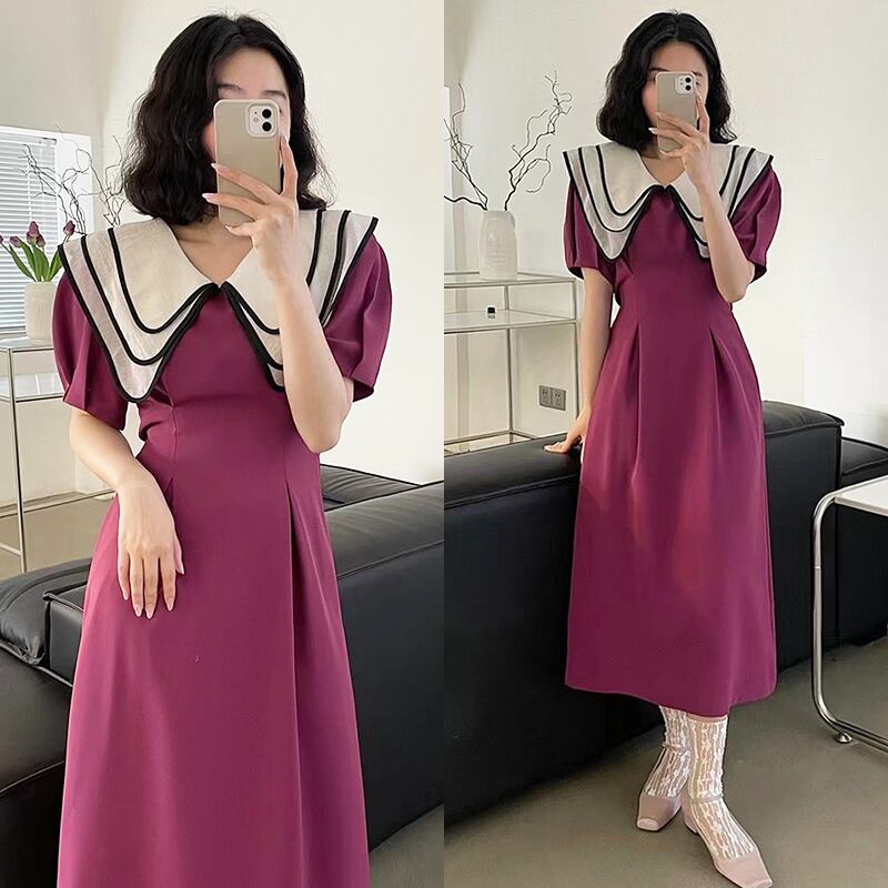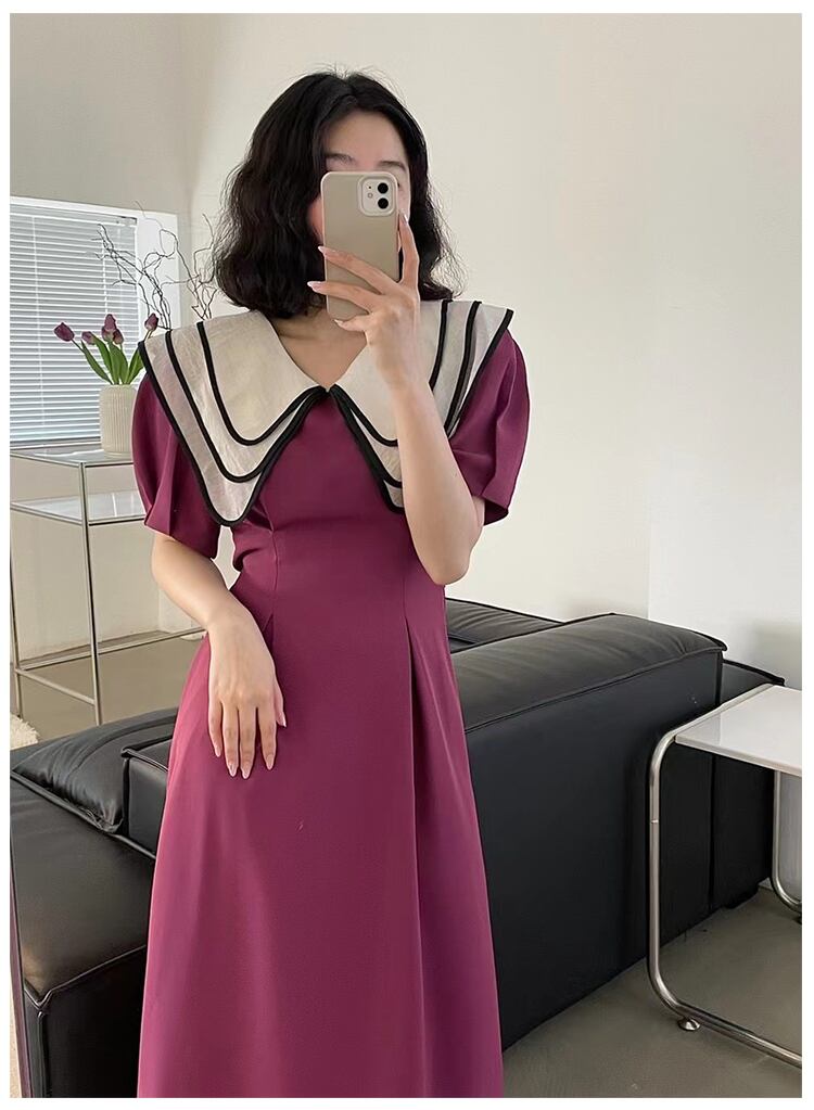 スタンダードカラープリーツウェスト薄手スリーブドレス ロングスカート レディース レッド レトロ 5/3 春夏 SS Neploe mi4687117050465