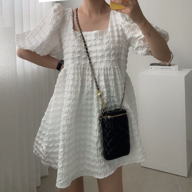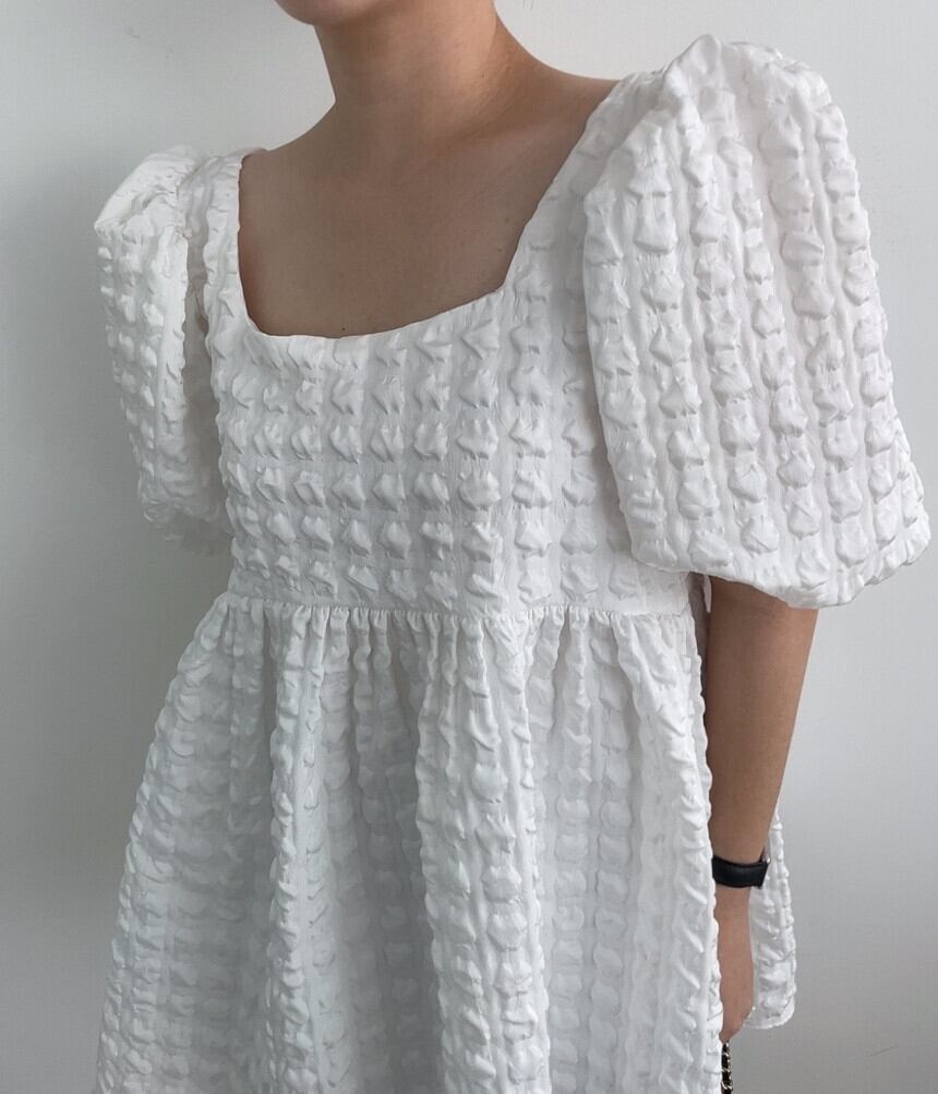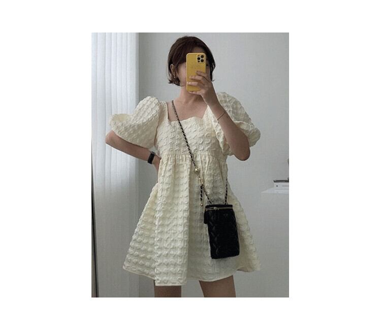 サマーカラー格子柄プリーツスリーブドレス 夏物 スクウェア 5/3 春夏 SS Neploe mi4671441623229