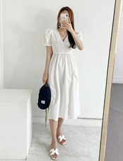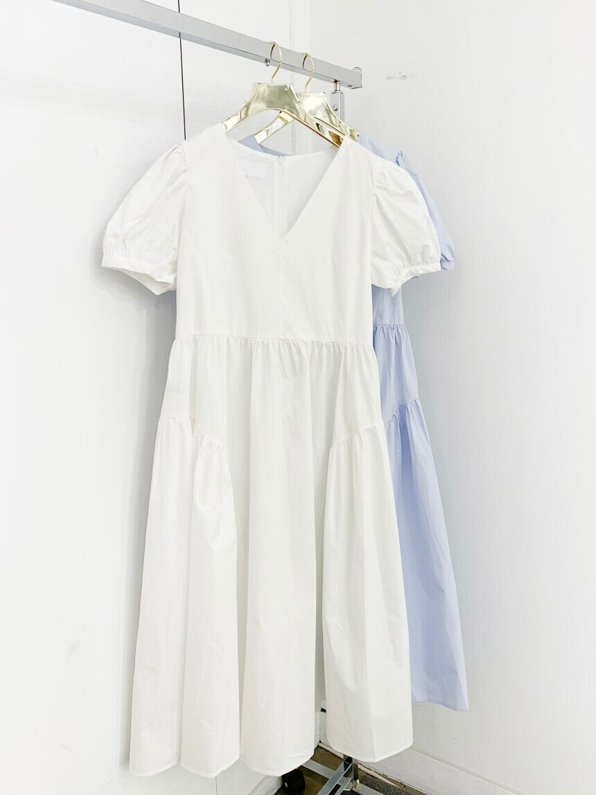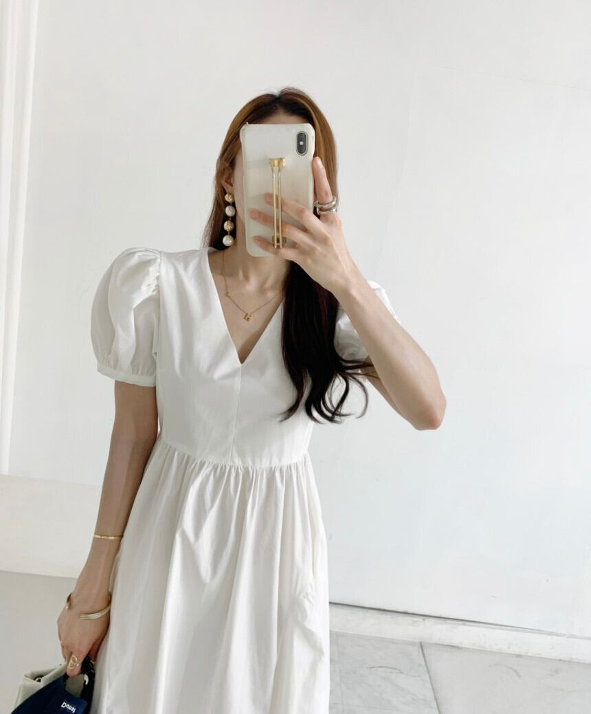 サマーVネックプリーツウェストソリッド カラーAラインドレス レディース 夏物 ソリッドカラー 5/3 春夏 SS Neploe mi4673157750454