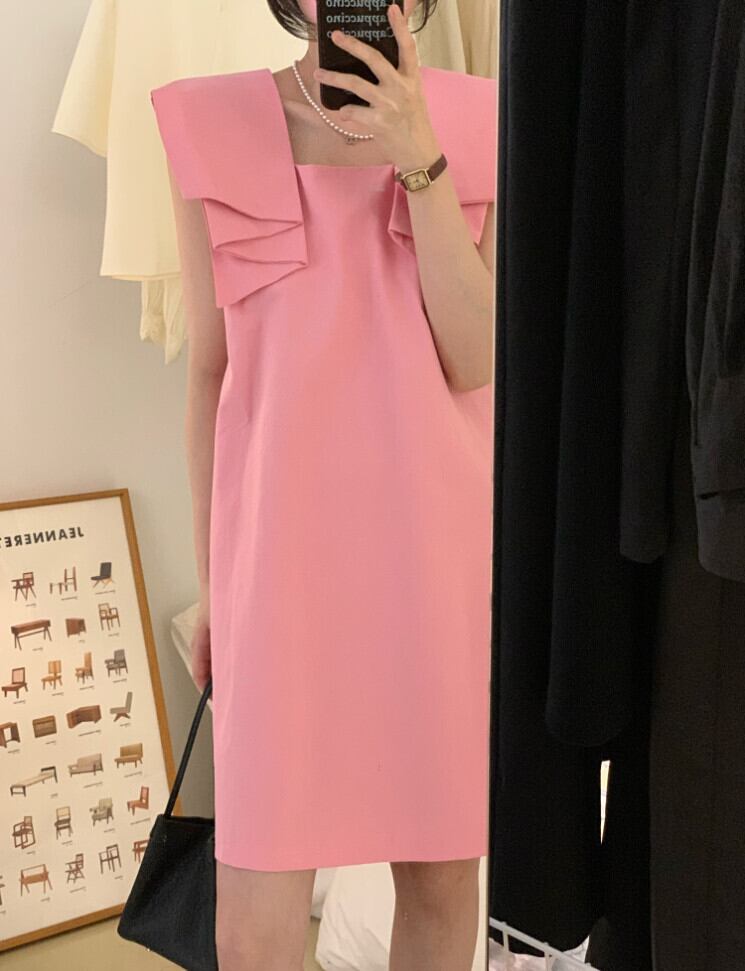 サマーカラールーズスリーブワンピーススカート レディース ピンク 大人ガーリー スウィート キュート カジュアル 夏物 スクウェア 5/3 春夏 SS Neploe mi4695861951173