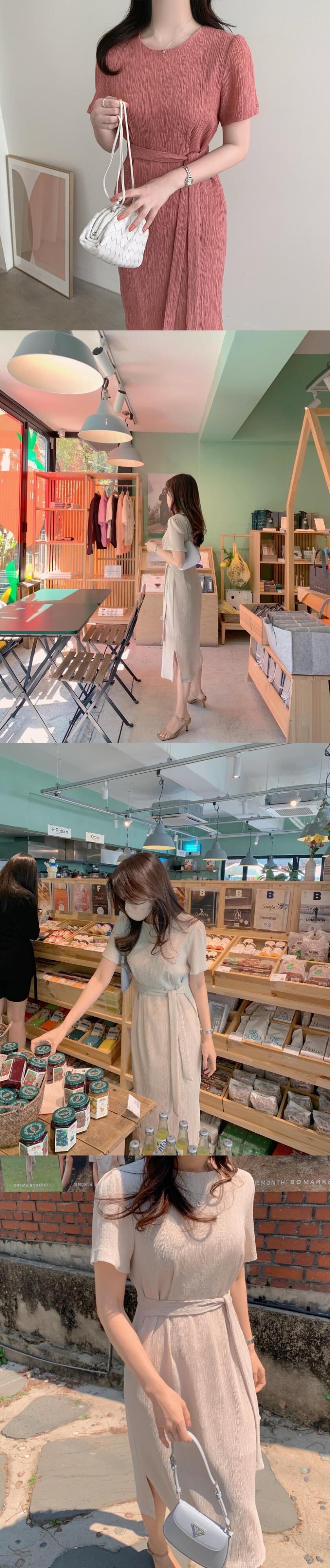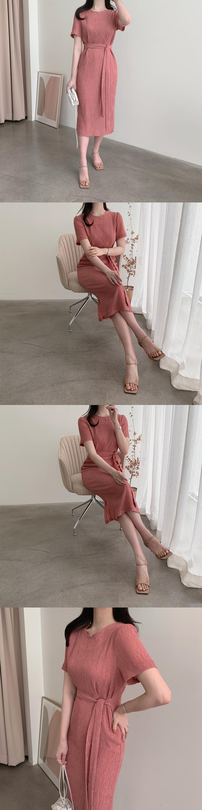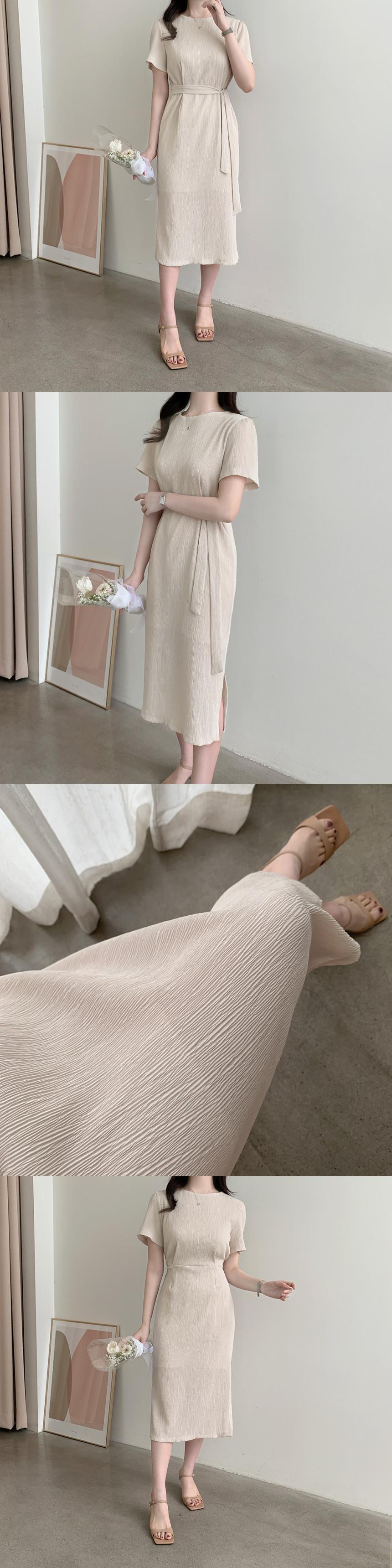 サマーラウンドネックウェストプリーツサイドスリットドレス エレガント 夏物 Oネック 5/3 春夏 SS Neploe mi4653572988992