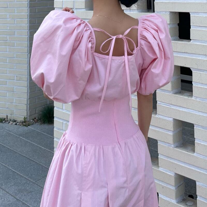 サマーカラーバックレースウェストスリムスリーブドレス 夏物 スクウェア 5/3 春夏 SS Neploe mi46411032456