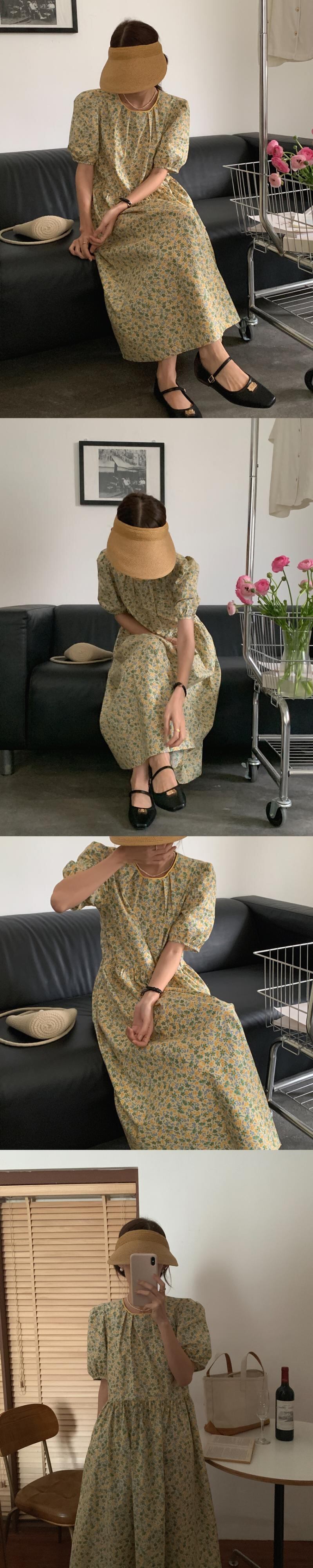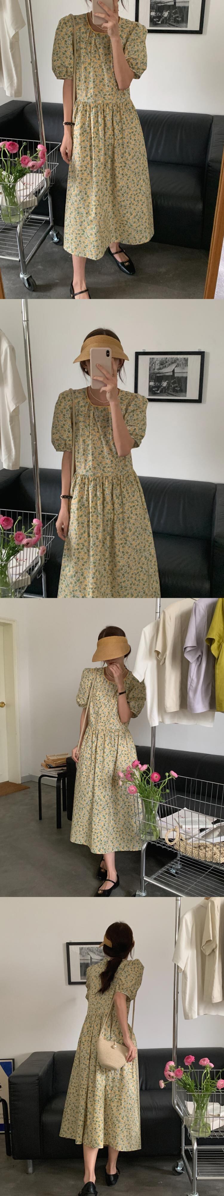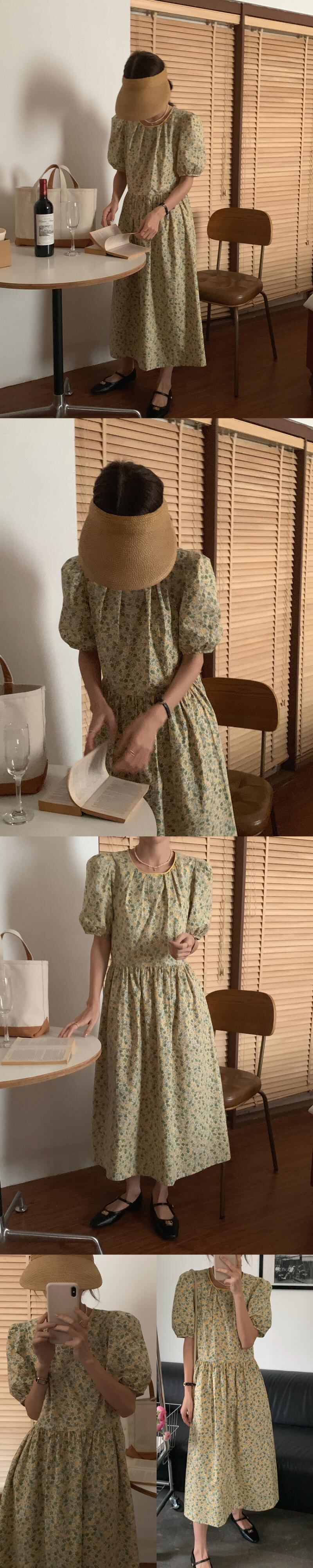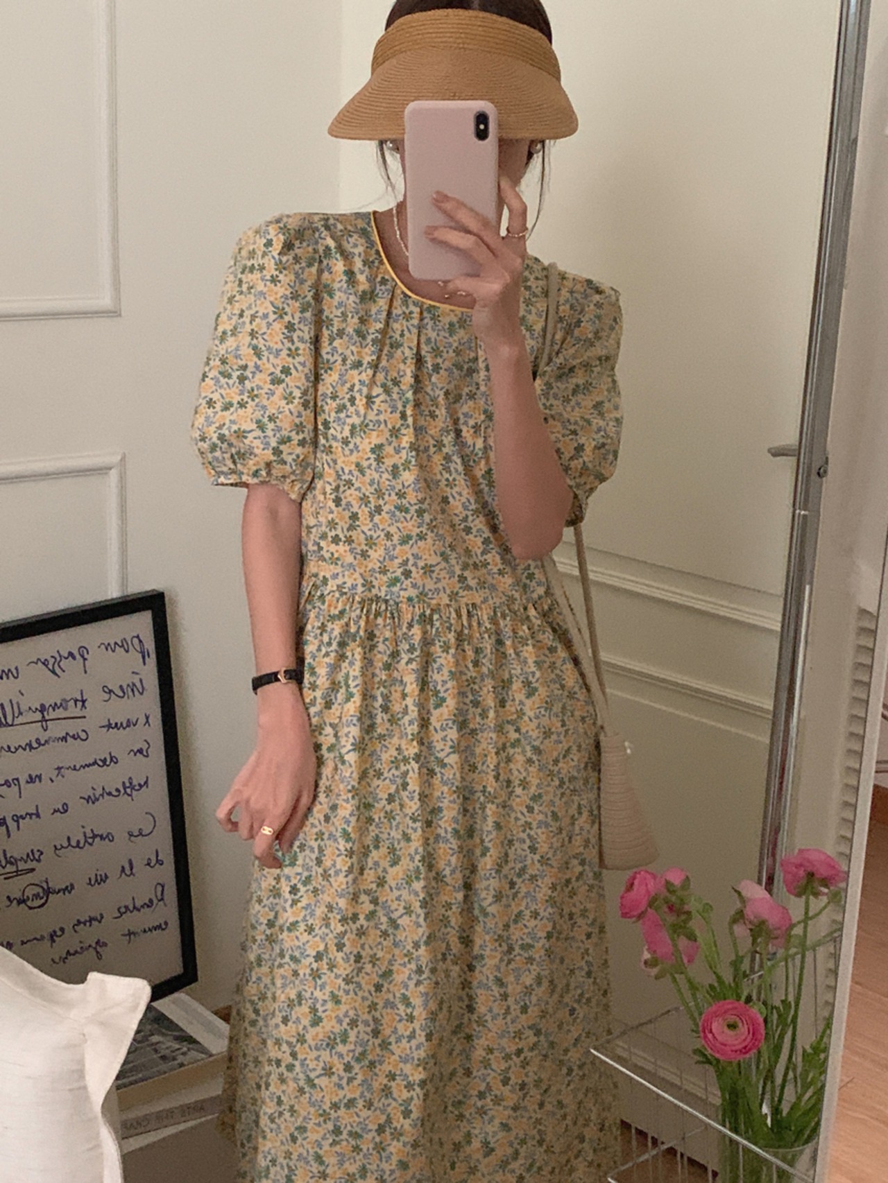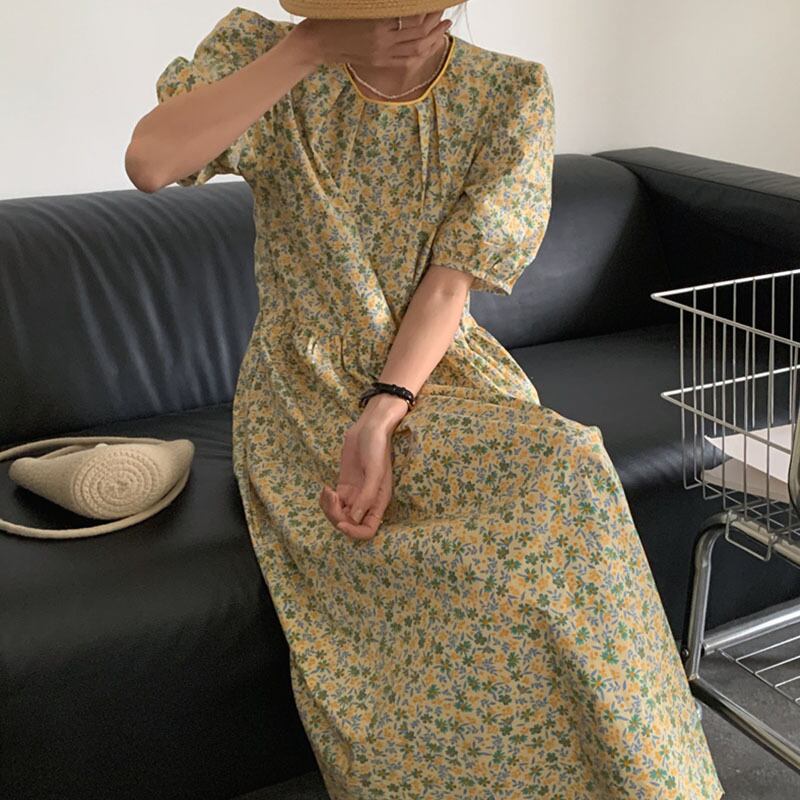 サマースタイルラウンドネックプリーツウェストフローラルドレス ロングスカート 夏物 花柄 Oネック 5/3 春夏 SS Neploe mi4624393339760