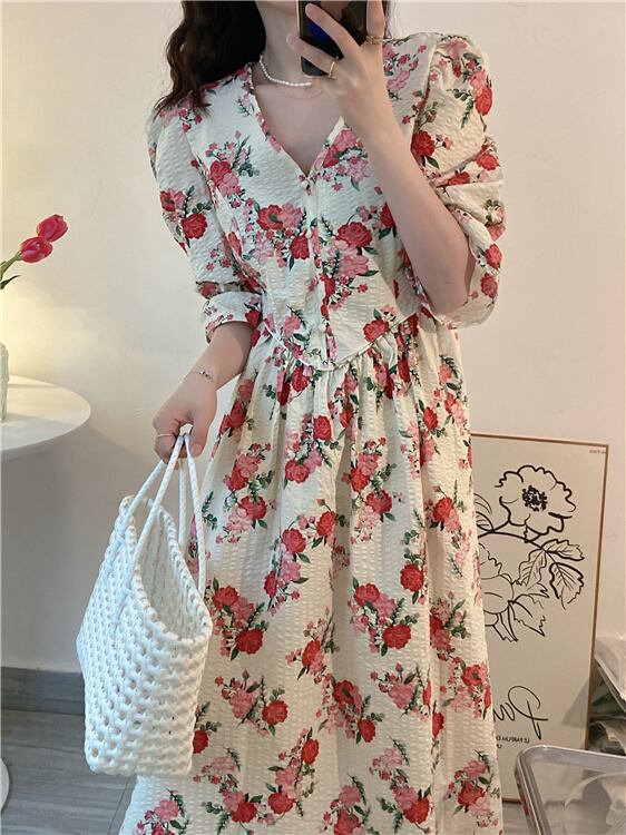 サマーVネックフローラルプリント柄ルーズカジュアルドレス レディース 大人ガーリー スウィート キュート 夏物 花柄 5/3 春夏 SS Neploe mi4649412508292