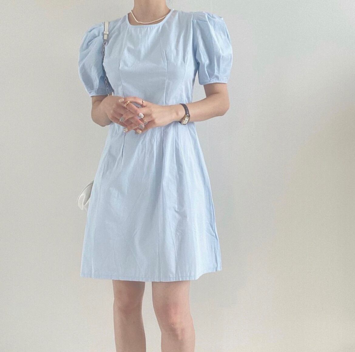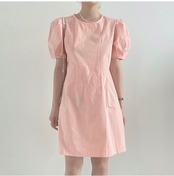 サマーラウンドネックウェスト薄手プリーツドレス ショートスカート レディース 大人ガーリー スウィート キュート カジュアル 夏物 Oネック 5/3 春夏 SS Neploe mi4668572402931