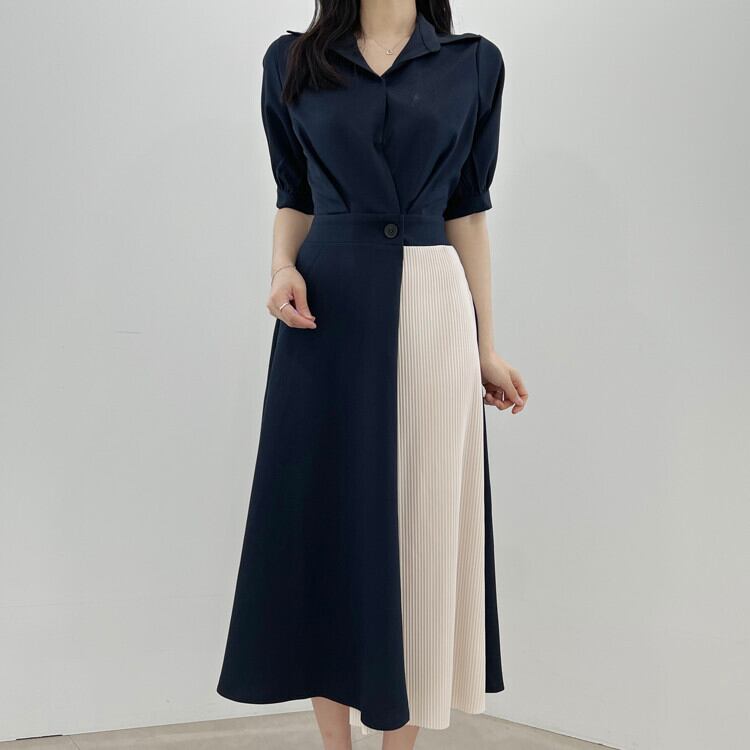 サマーカラーボタンウェストシャツ ドレス レディース エレガント 夏物 ステッチ 5/3 春夏 SS Neploe mi468454815963