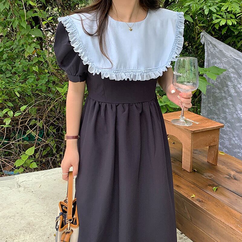 サマースタンダードウェスト薄手スリーブドレス レトロ 夏物 ステッチ 5/3 春夏 SS Neploe mi4619042467477