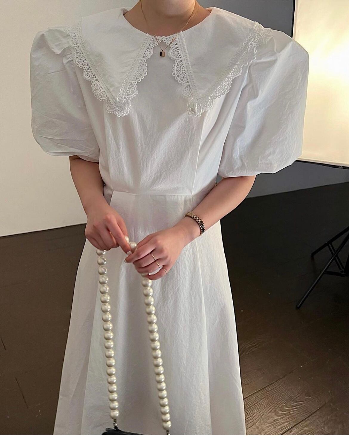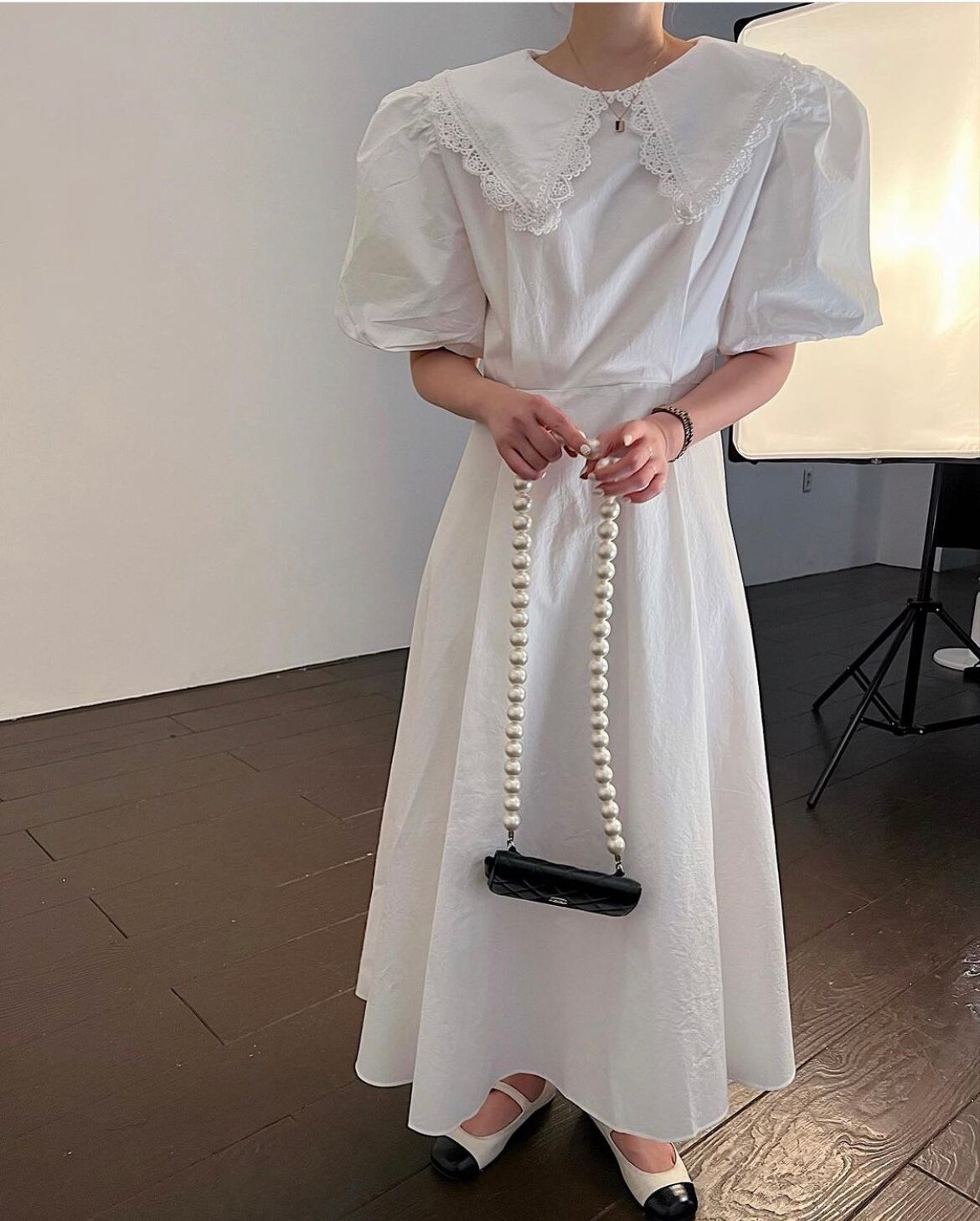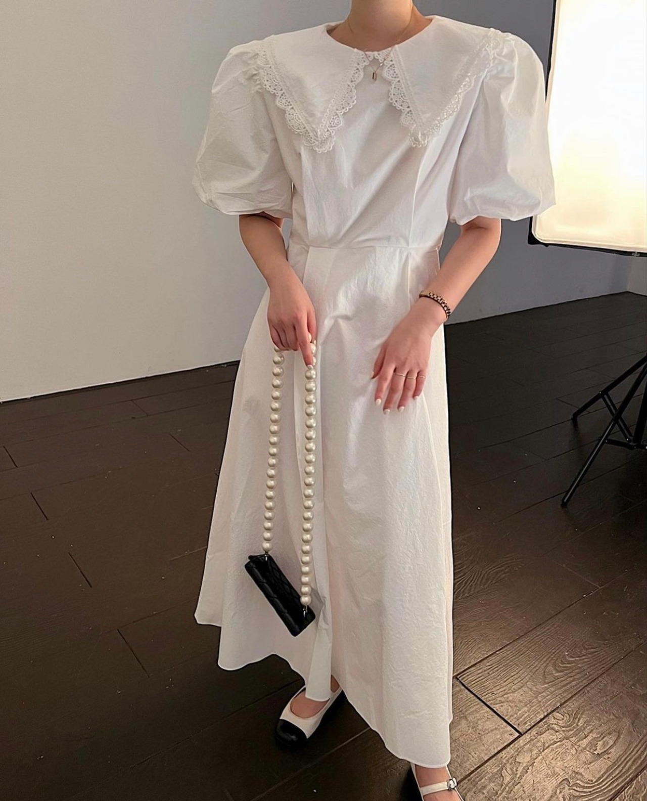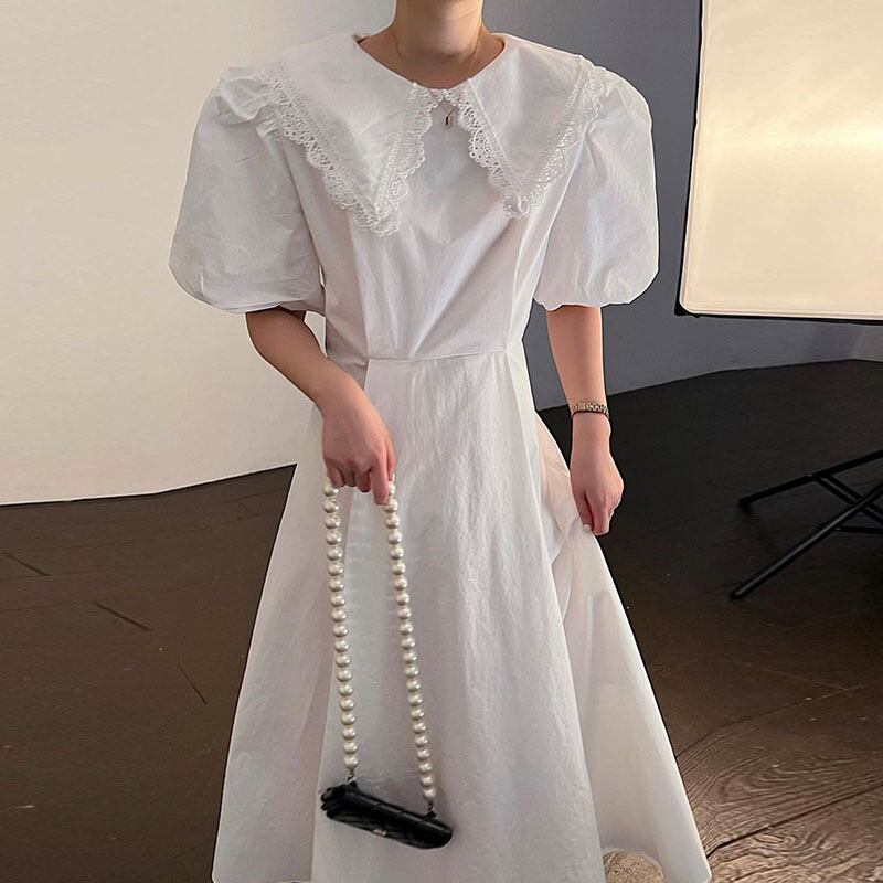 サマーレースFlowerデザイン ウェストスリムスリーブドレス ロングスカート エレガント 夏物 フラワーデザイン 5/3 春夏 SS Neploe mi4672743560114