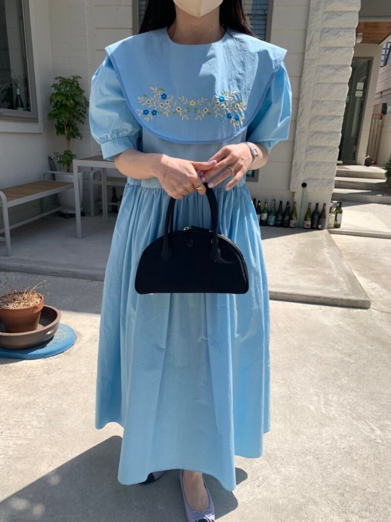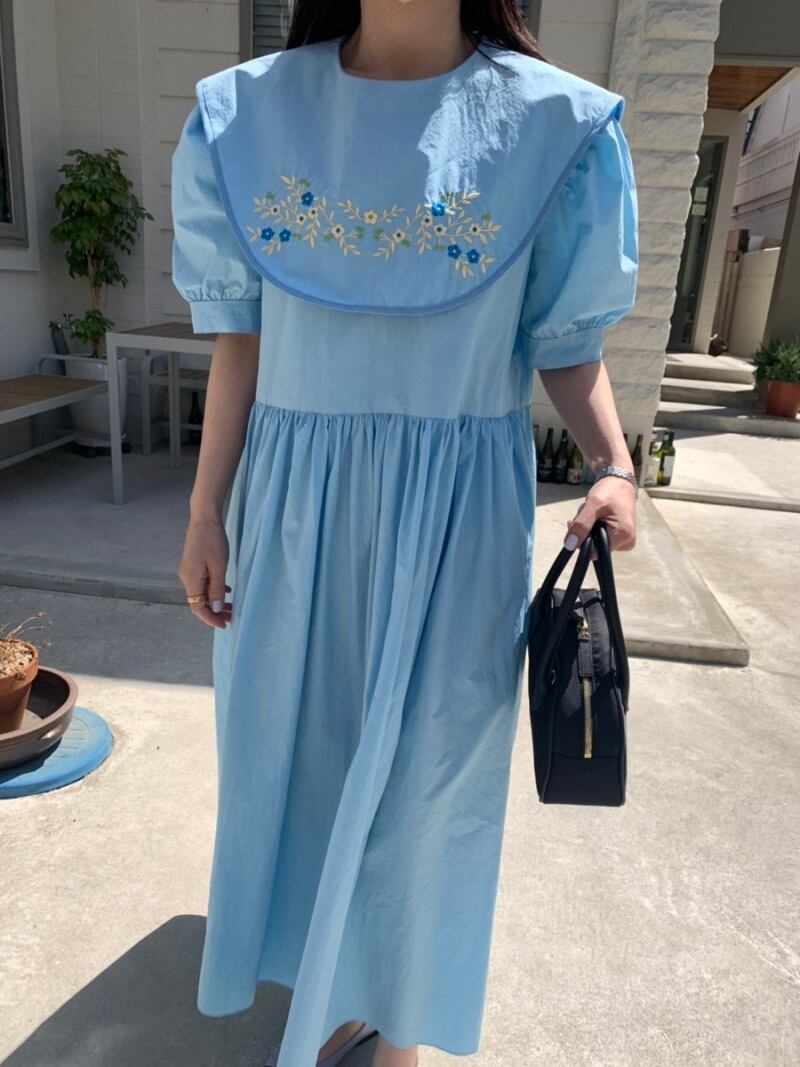 サマーFlowerデザイン 刺繍ルーズスリーブドレス ロングスカート 夏物 フラワーデザイン 5/3 春夏 SS Neploe mi4619538187751