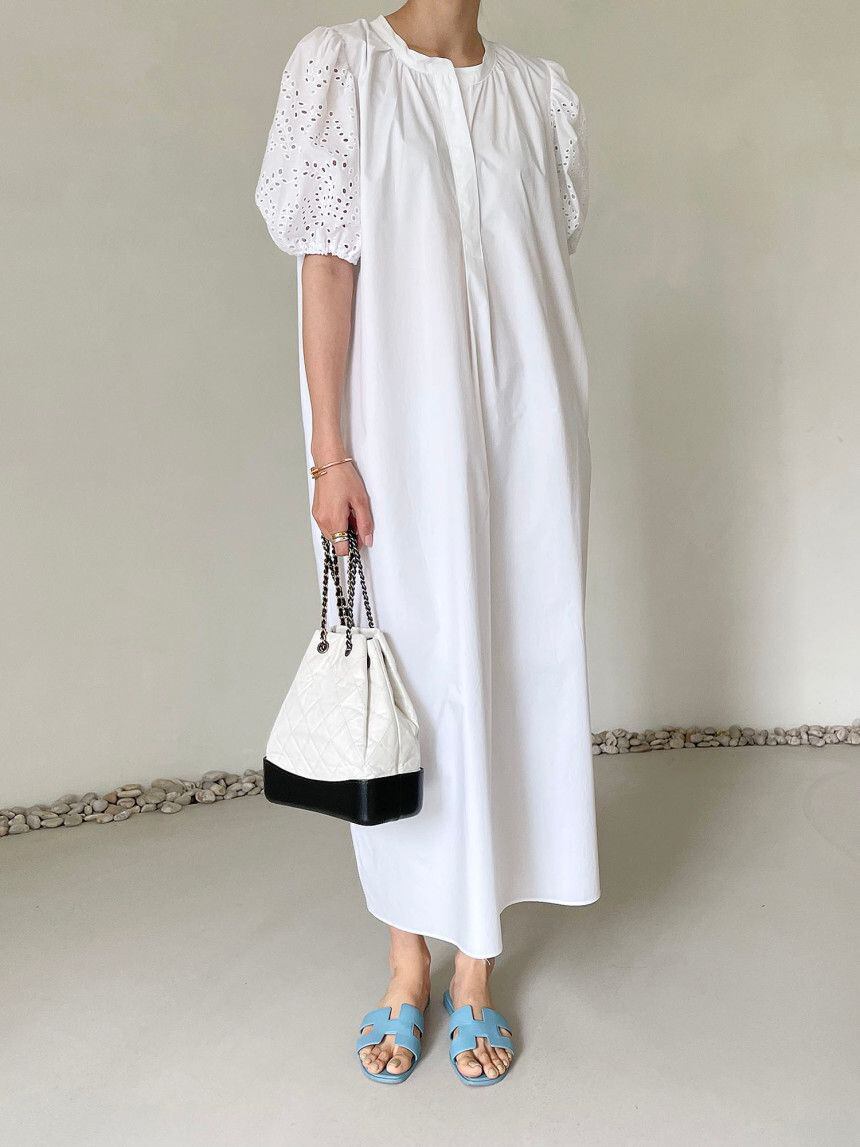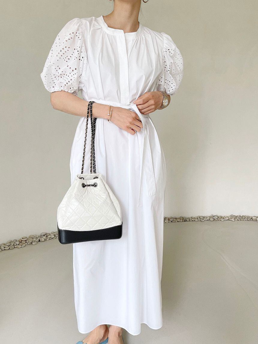 サマーラウンドネックウェストFlowerデザイン スリーブドレス 夏物 Oネック フラワーデザイン 5/3 春夏 SS Neploe mi4635826784209