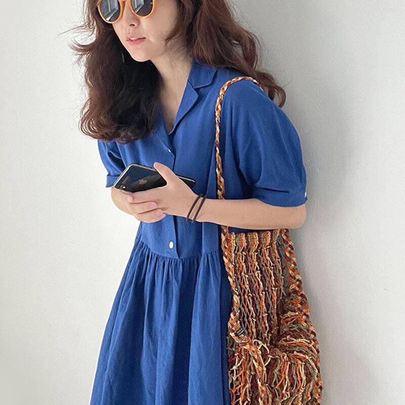 サマーカラーボタンルーズカジュアルスリーブドレス ロングスカート 夏物 5/3 春夏 SS Neploe mi4615884727891