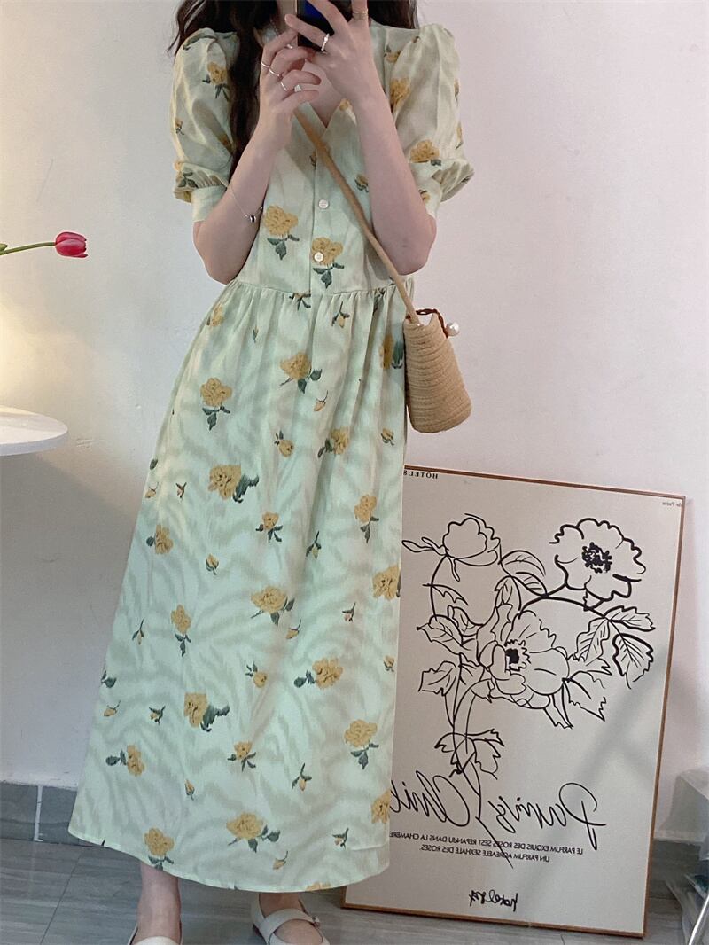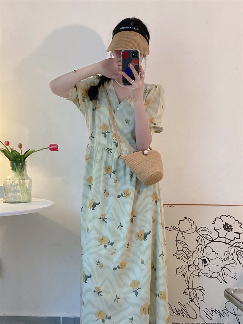 サマーVネックウェスト薄手フローラルドレス ロングスカート 夏物 花柄 5/3 春夏 SS Neploe mi4617159148247