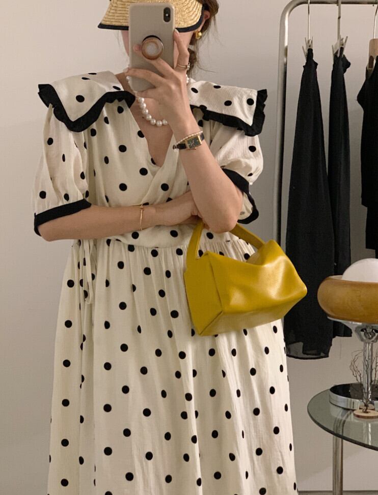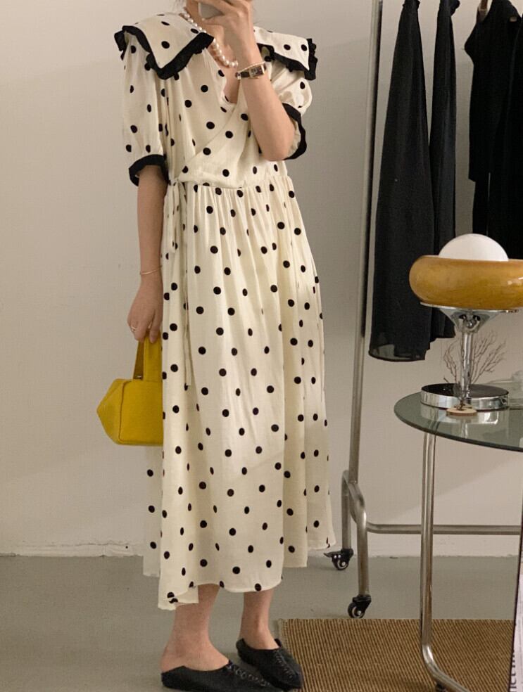サマーカラーウェストスリーブ水玉ドレス ロングスカート レディース 夏物 5/3 春夏 SS Neploe mi4656211906850