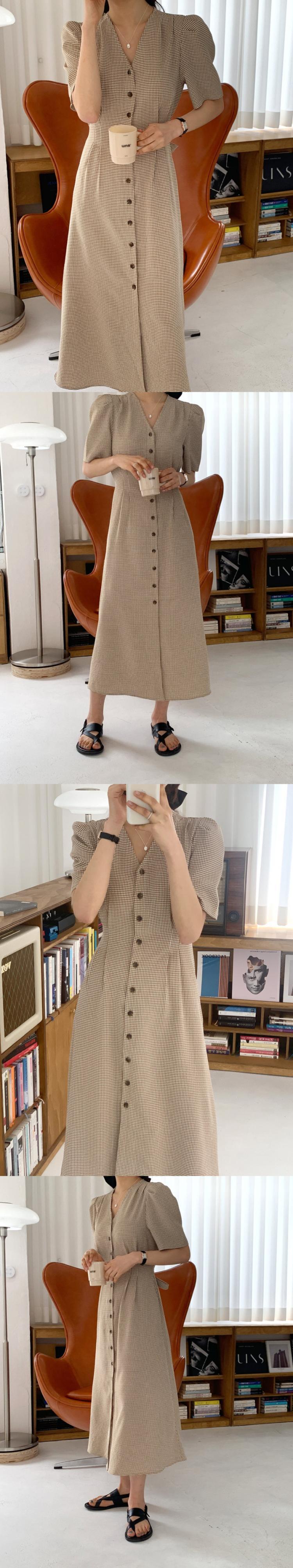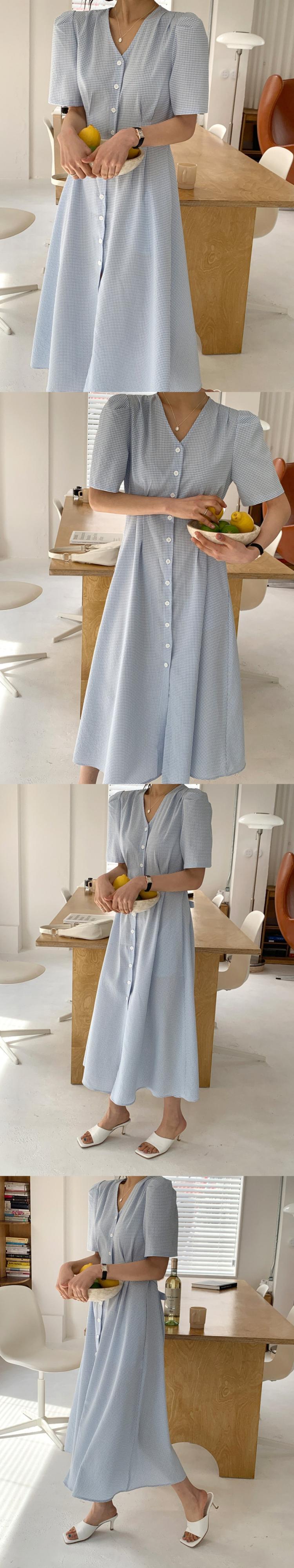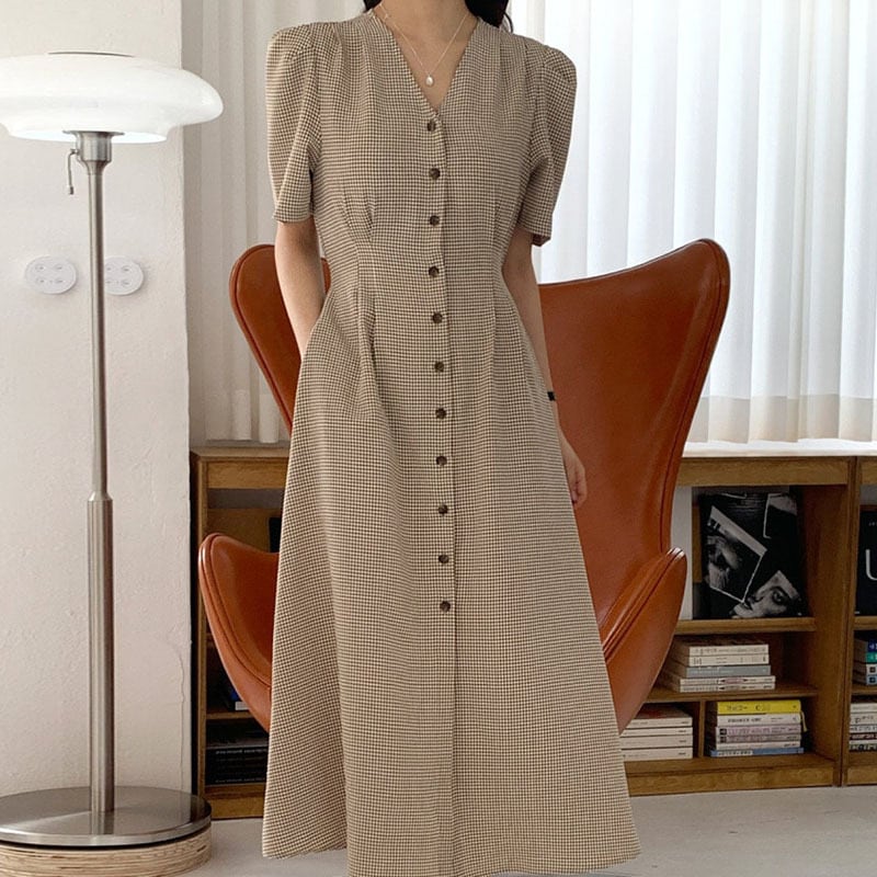 サマーVネックカラーウェストスリーブ格子柄ドレス レディース エレガント 夏物 5/3 春夏 SS Neploe mi4628536906185