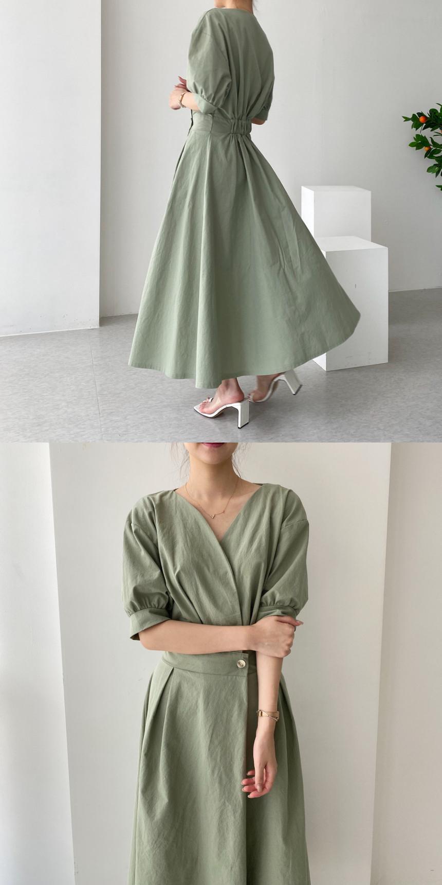 サマーVネックボタンウェストスリムスリーブAラインドレス ロングスカート レディース 夏物 5/3 春夏 SS Neploe mi465459193674