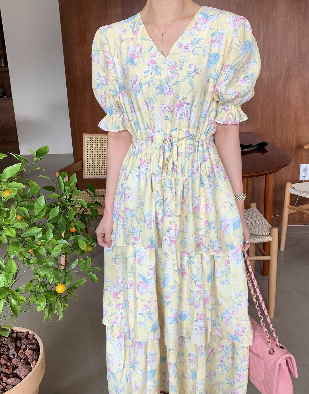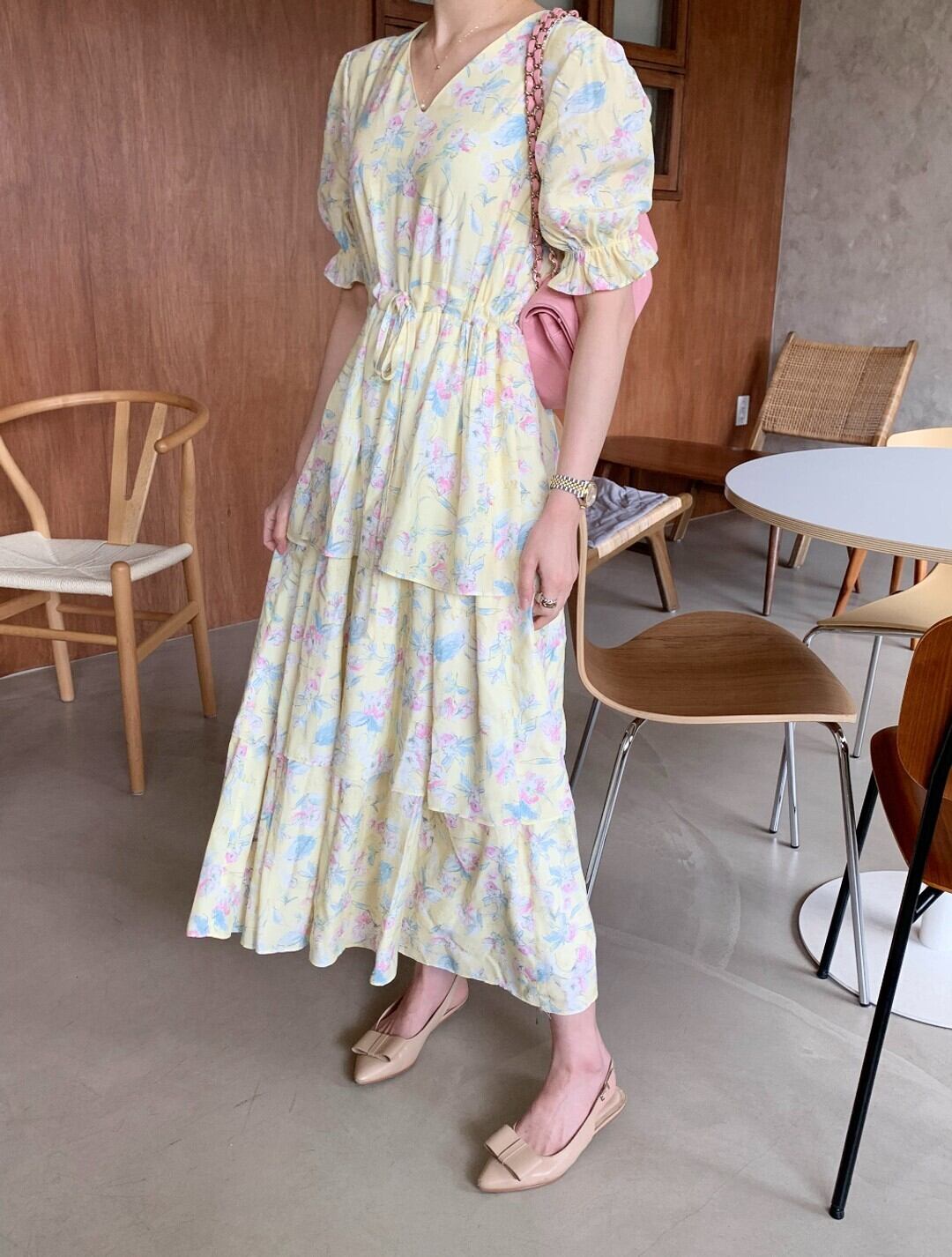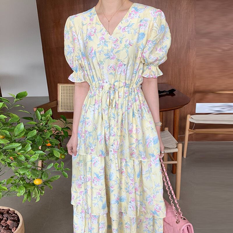 サマーVネックフローラルウェストスリーブドレス レディース 大人ガーリー スウィート キュート カジュアル エレガント 夏物 花柄 5/3 春夏 SS Neploe mi4615391937784
