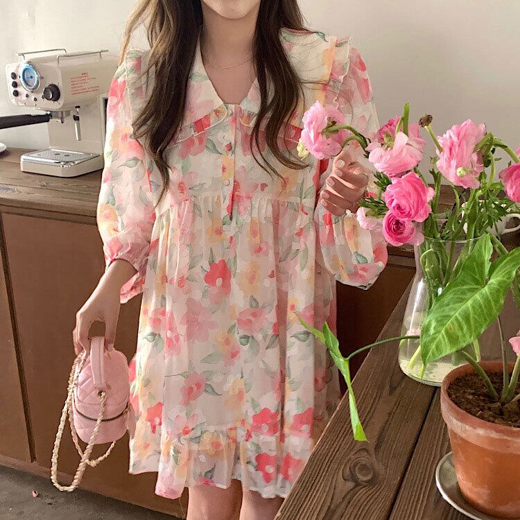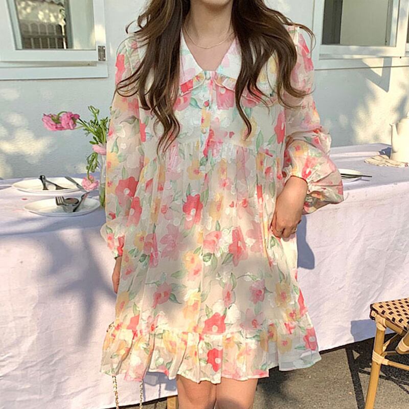 サマーカラーシフォンドレス ロング 大人ガーリー スウィート キュート カジュアル 夏物 フラワーデザイン 5/3 春夏 SS Neploe mi4669669216290